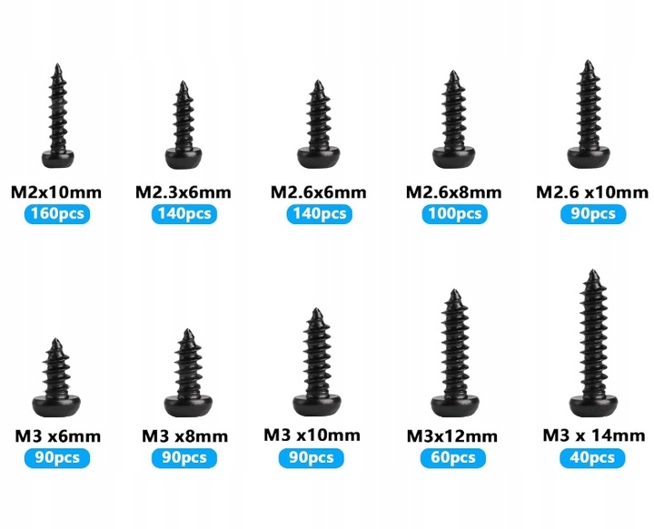НАБІР ГВИНТІВ TORX M2 M2.3 M2.6 M3 САМОРІЗУЮЧІ ГВИНТИ x1000