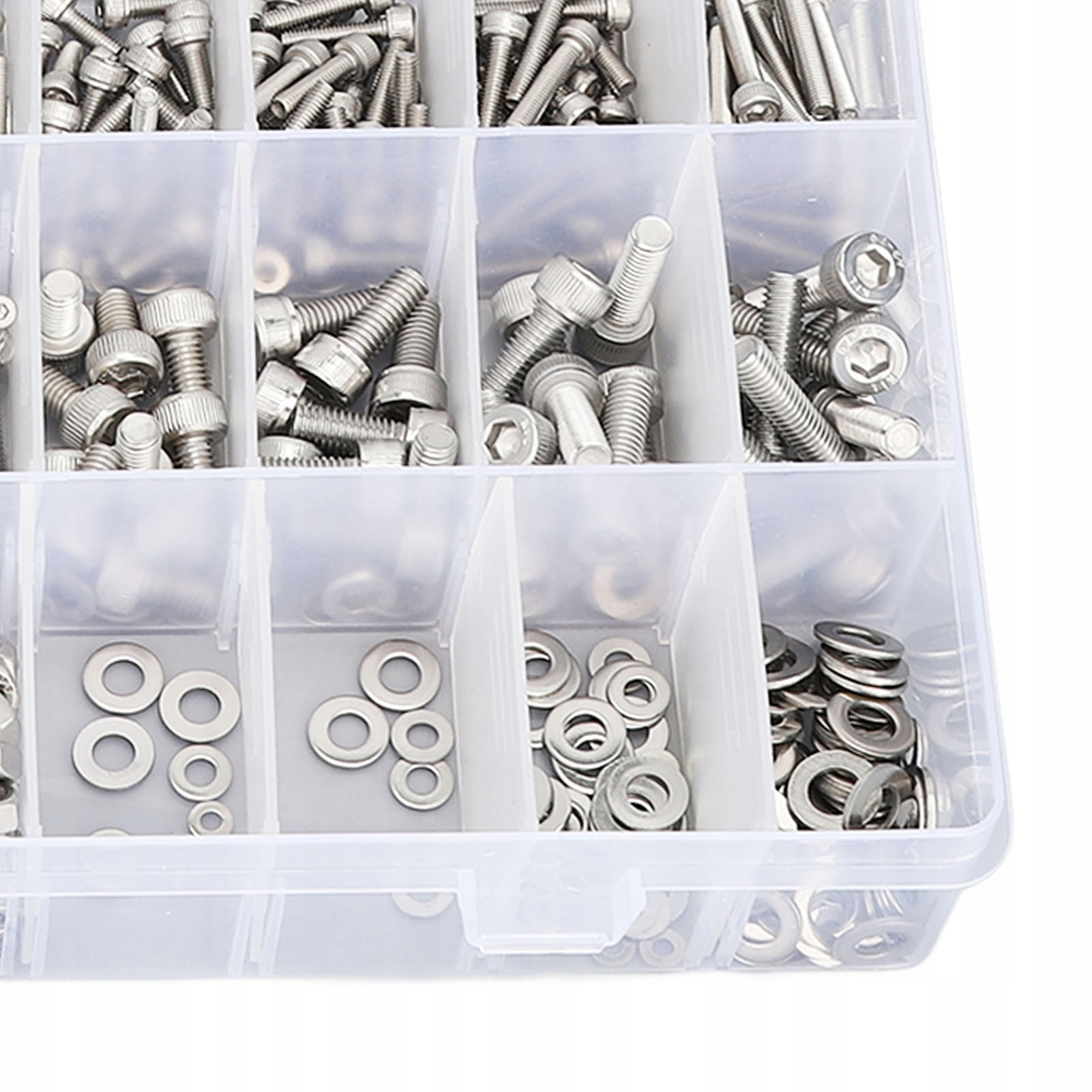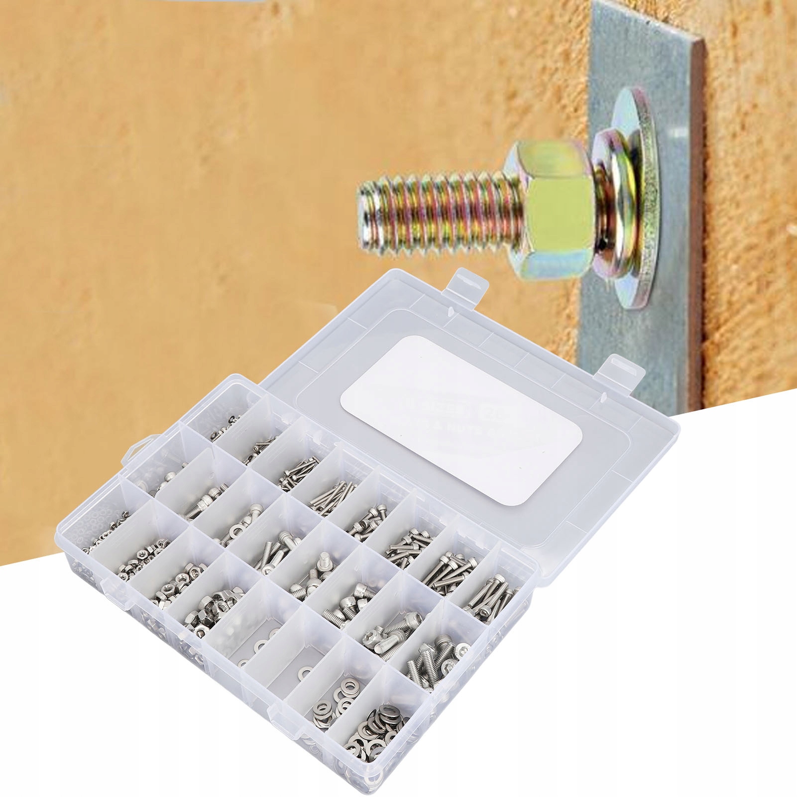 4. Пластиковый ящик для хранения. Эти винты, гайки и шайбы упакованы в пластиковые коробки для хранения, а дизайн этикетки позволяет легко упорядочивать и извлекать эти крепежные детали.