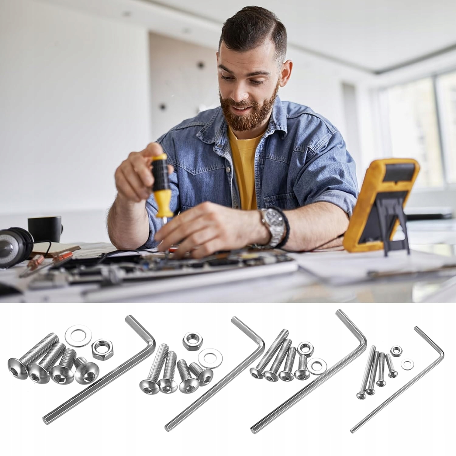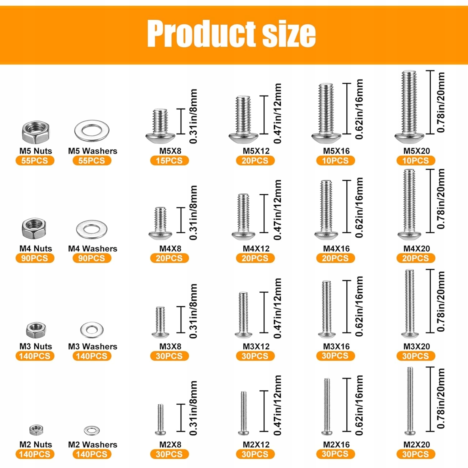 Все наборы шестигранных болтов, гаек и шайб упакованы в коробку для хранения, которую легко использовать, найти и переносить. Пожалуйста, не допускайте рассыпания или потери винтов во время использования. Для более точной установки можно использовать гайки и шайбы.