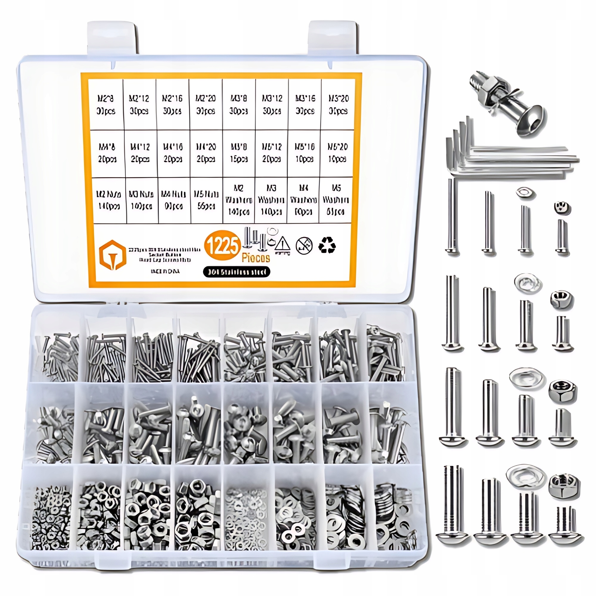 НАБІР ГВИНТІВ З НЕРЖАВІЮЧОЇ СТАЛІ M2/M3/M4/M5, КРИШКИ ШАЙБИ, 1225 шт.