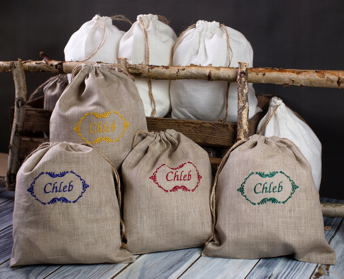 Набор льняных мешков: для хлеба и булочек на подкладке