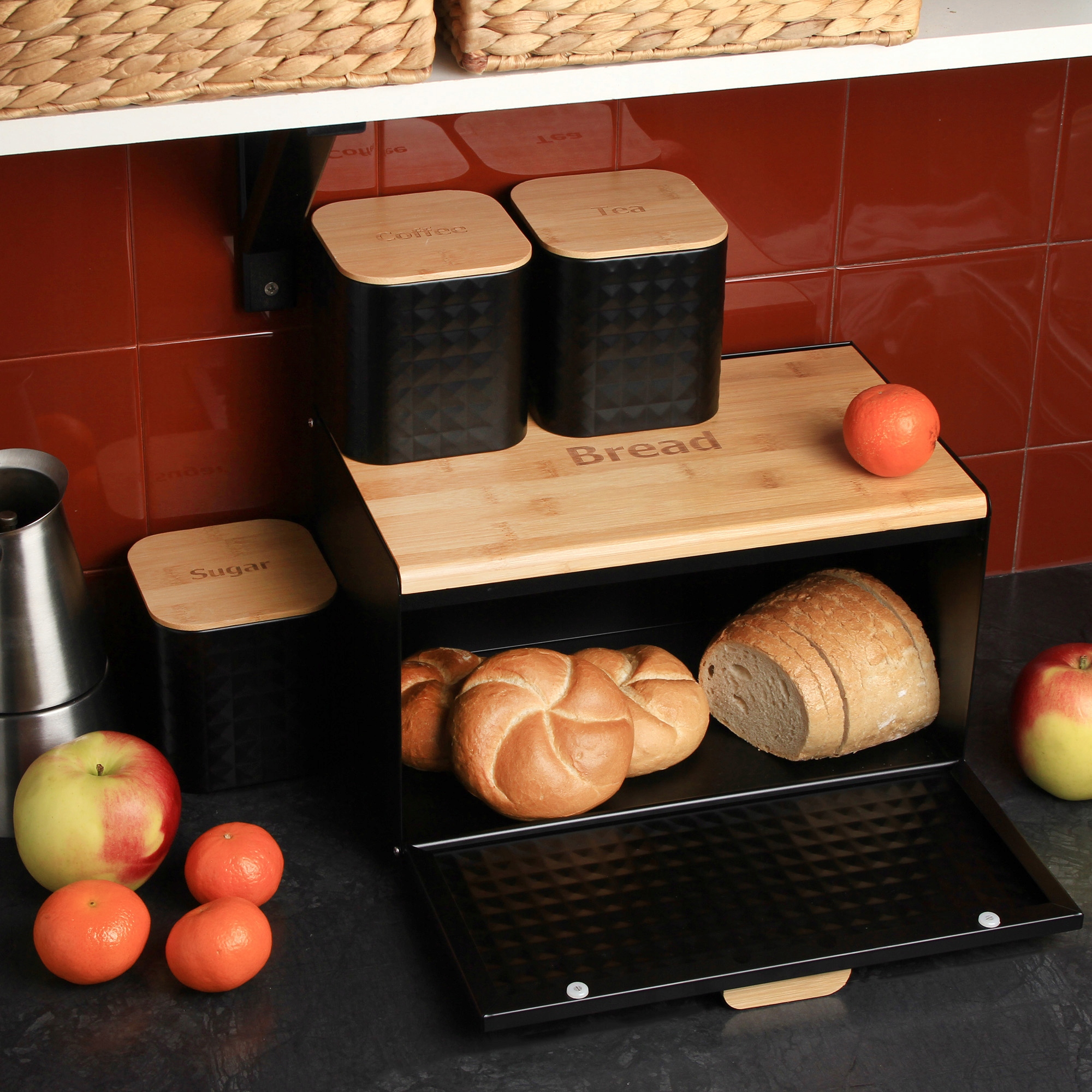 Набір ХЛІБОПІЧКА + 3 КОНТЕЙНЕРИ Brunbeste BREAD BREAK чорна сталь бамбук BB1627