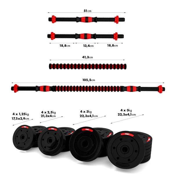 Набор HMS, гантели, 40 кг, регулируемая штанга, композитный комплект полной прочности