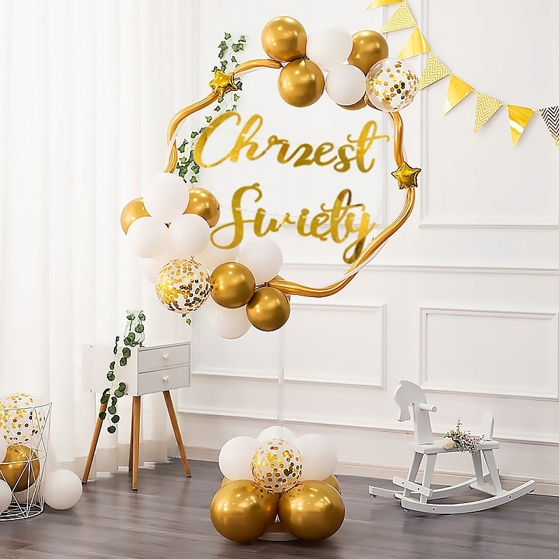Набір ХРЕЩЕННЯ ПІДСТАВКА + БАНЕР золоті кулі