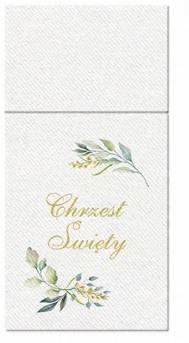 ✅ салфетки для искусства в печатных зеленых листьях и золотой надписи Священное крещение прекрасно подчеркнет природу церемонии