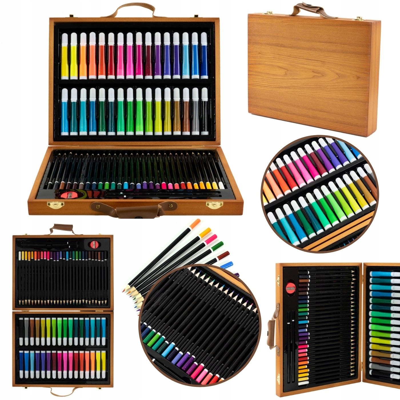 Художественные наборы — это широкий выбор принадлежностей для рисования и рисования, заключенных в эстетичный футляр для переноски. Набор состоит из 63 элементов - множество аксессуаров сделают каждое использование художественного набора идеальным путешествием в мир искусства. Инструменты изготовлены из материалов высочайшего качества и представлены в широкой цветовой гамме, что еще больше облегчит выполнение художественных работ. Качественные аксессуары, входящие в комплект, хорошо покрывают бумагу и очень эффективны, поэтому вы сможете создавать свои работы долгое время.