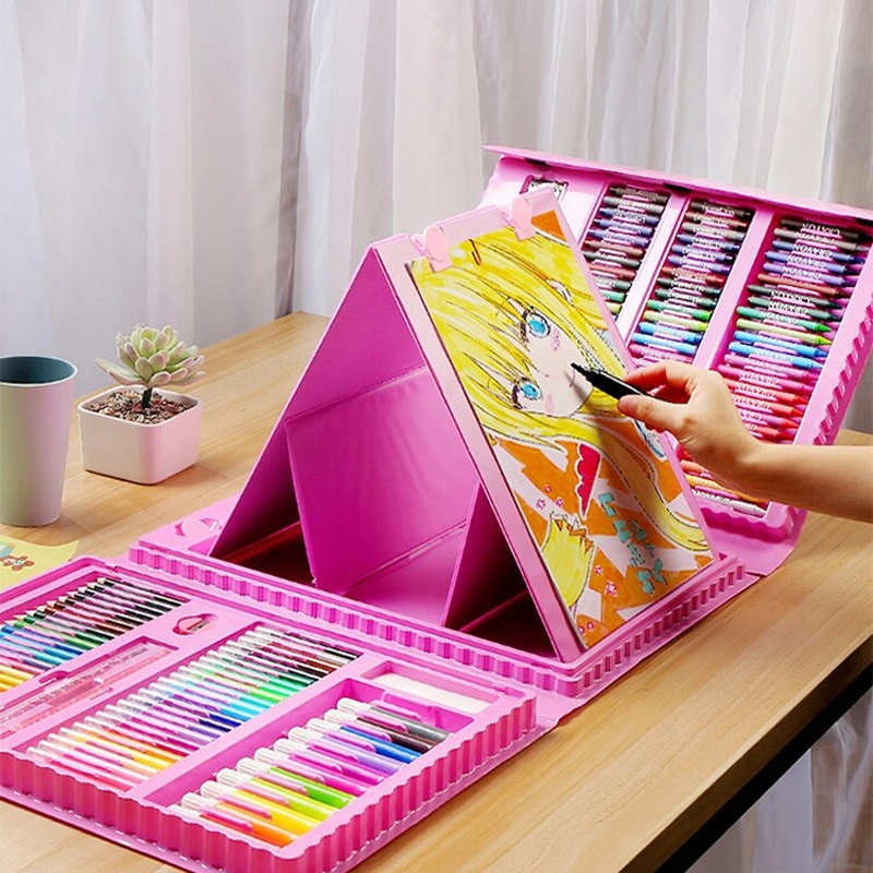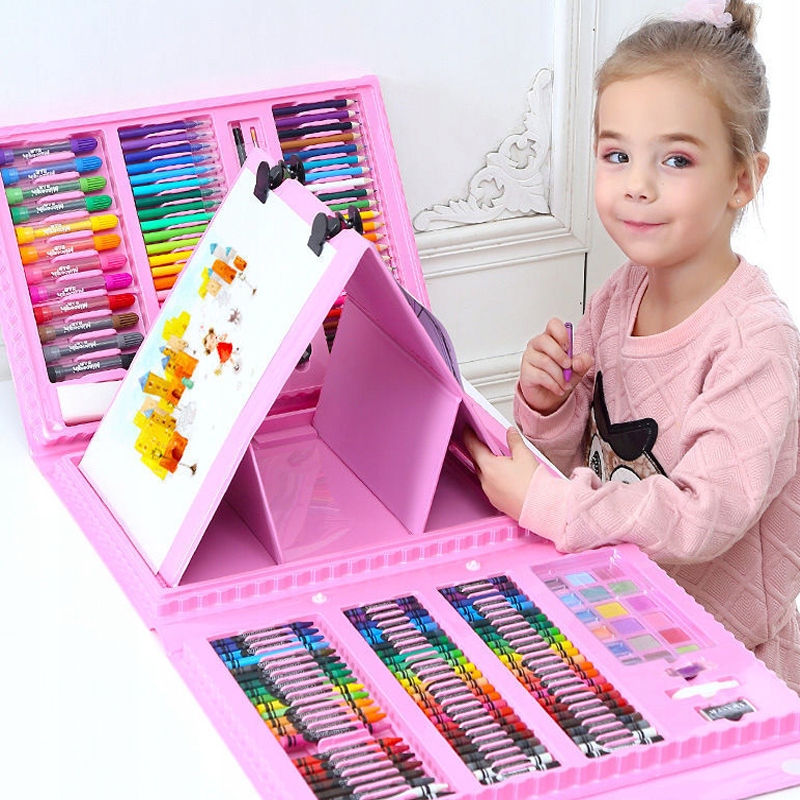 НАБОР ХУДОЖЕСТВЕННОЙ КРАСКИ + РОЗОВЫЙ ЧЕМОДАН, 208 ЭЛЕМЕНТОВ