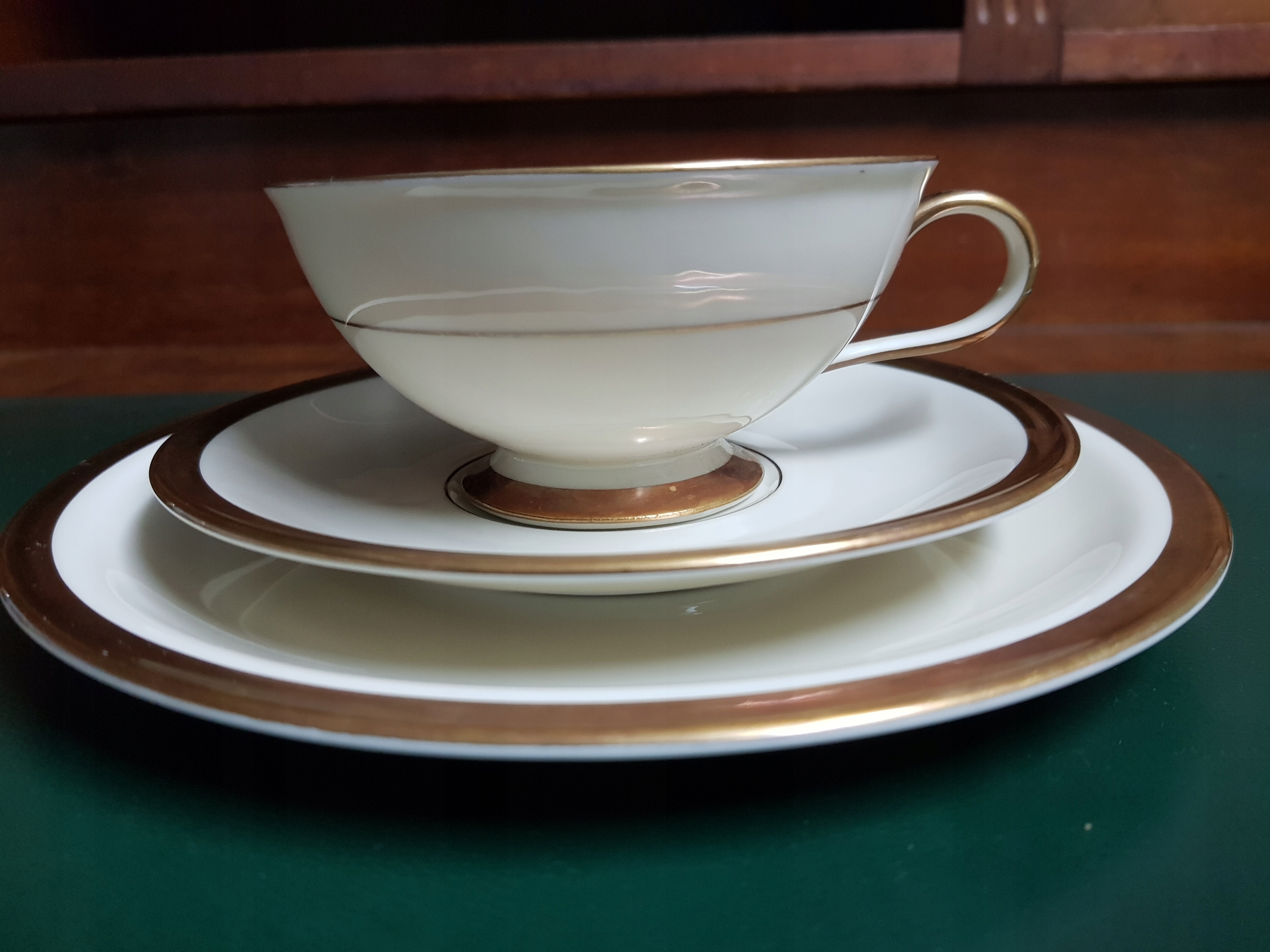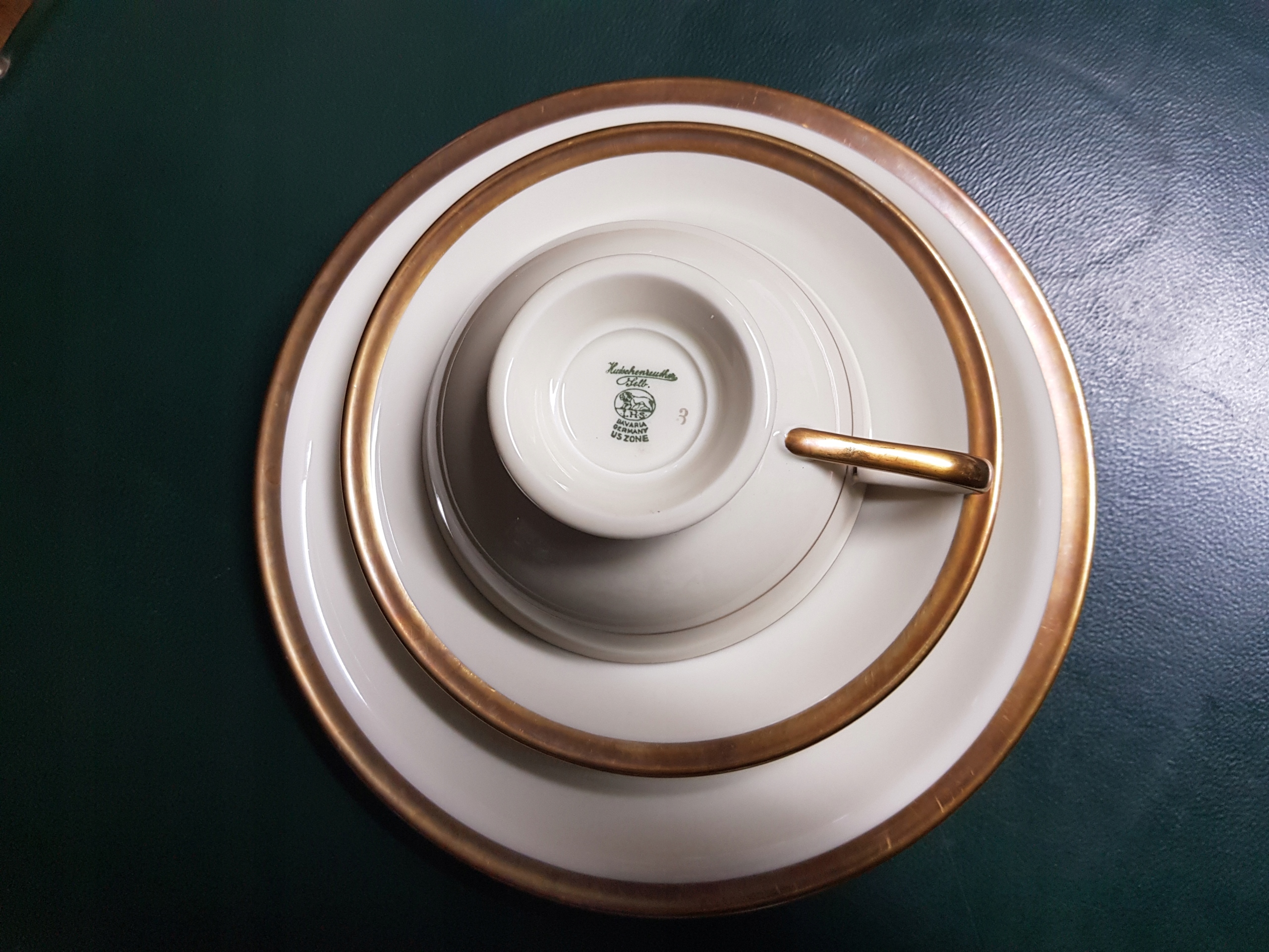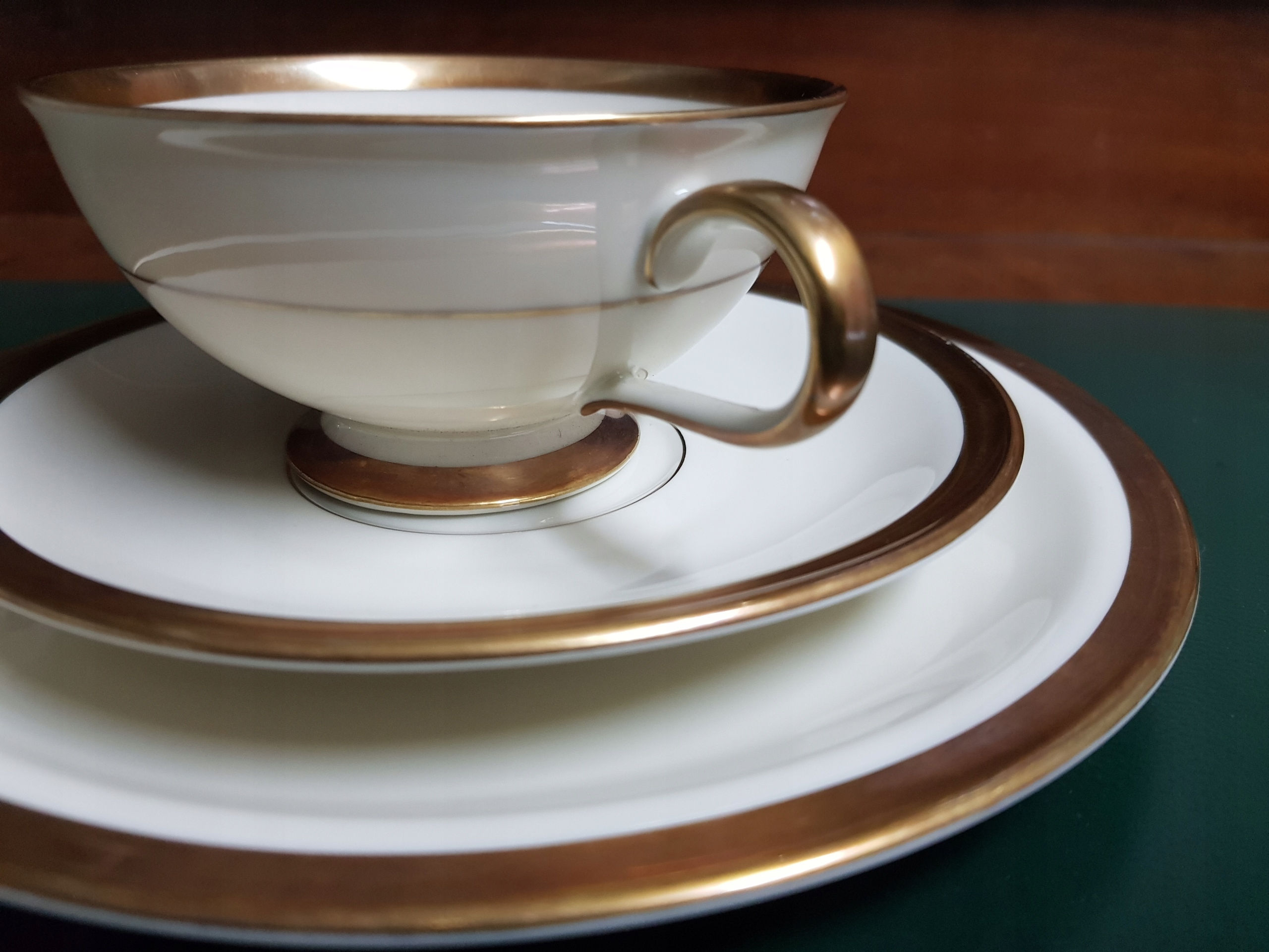 Предмет аукциона - сервиз для завтрака Hutschenreuther, модель Juwel. Позолота в хорошем состоянии. В наличии 5 комплектов. Цена указана за 1 комплект. Состояние одинаково хорошее.