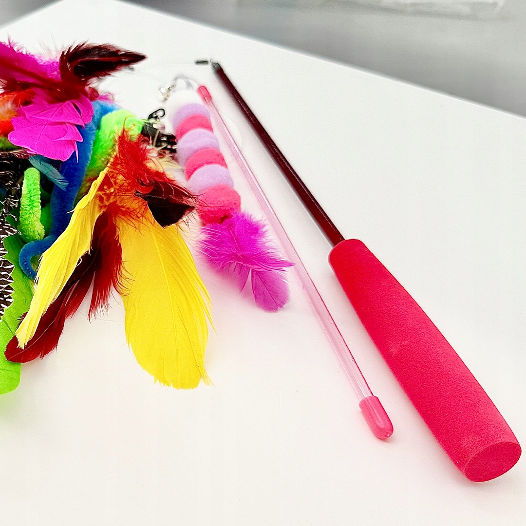 Набор из 12 игрушек для кошек — удочек, перьев, помпонов и колокольчиков