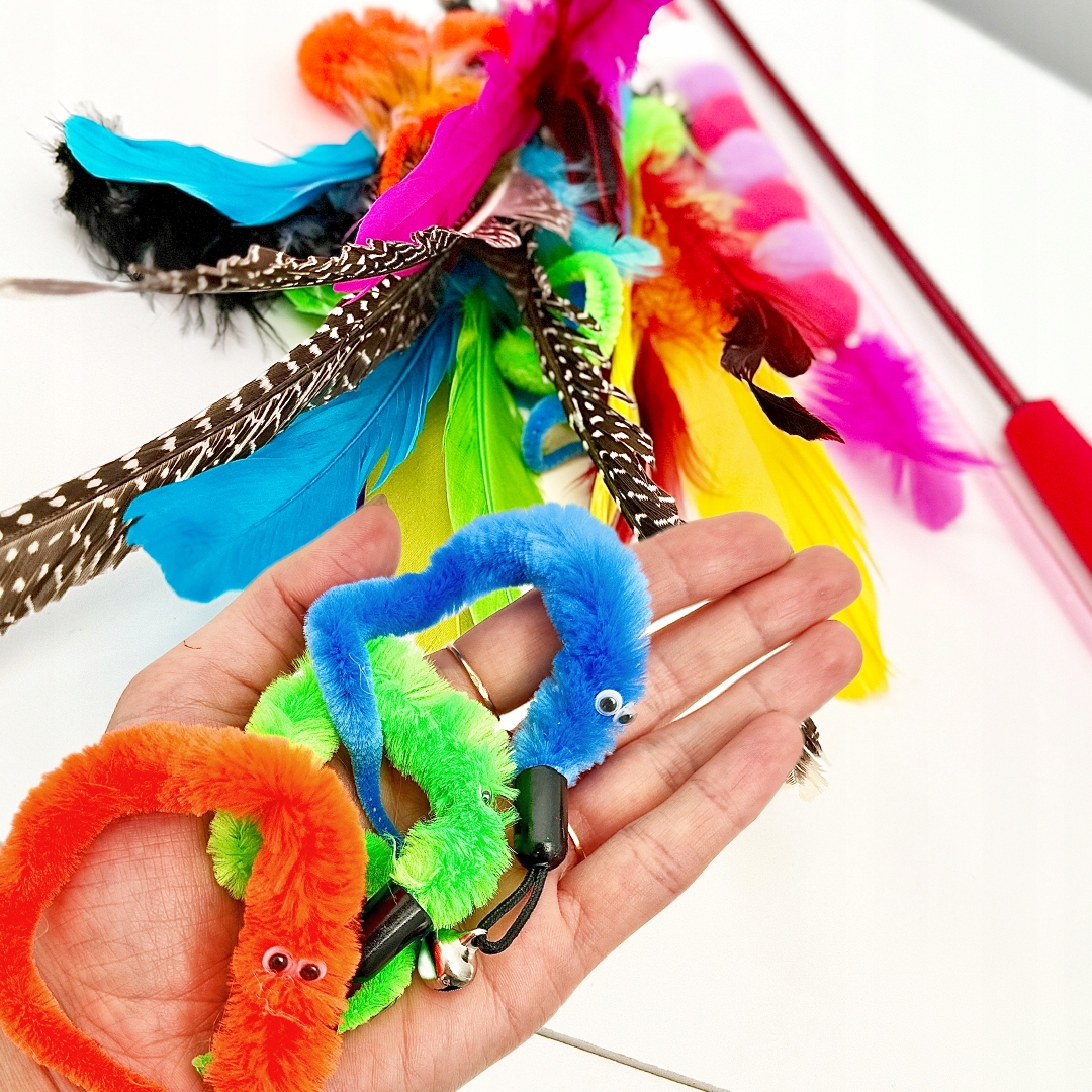 Ваш кот достоин лучшего развлечения! Этот набор интерактивных игрушек из 12 предметов создан для того, чтобы обеспечить вашему питомцу ежедневную дозу упражнений, активности и развлечений. Разноцветные перья, мягкие помпоны и изящные колокольчики стимулируют охотничий инстинкт, поощряя прыжки и погоню.