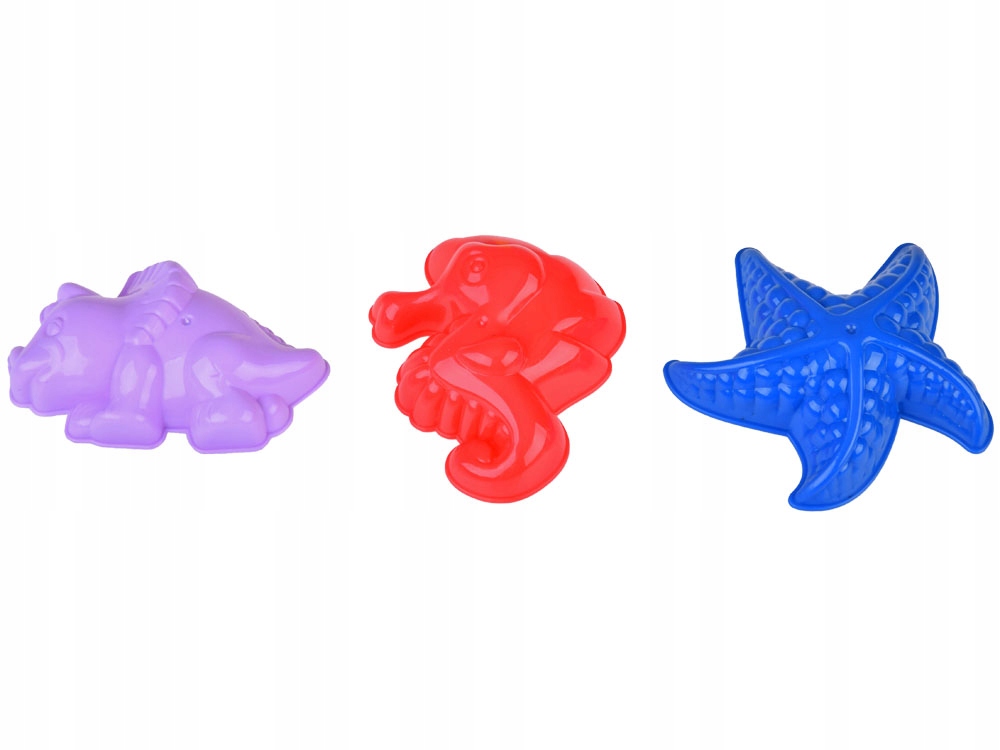 Кроме того, в набор входят три формы, формы которых понравятся каждому исследователю! Речь идет о: динозавре, морском коньке и морской звезде. Но это еще не все! Если наполнить ведро песком и перевернуть, получится чудесная башня! Поставив несколько из них рядом друг с другом, мы в конечном итоге создадим замок значительных размеров.