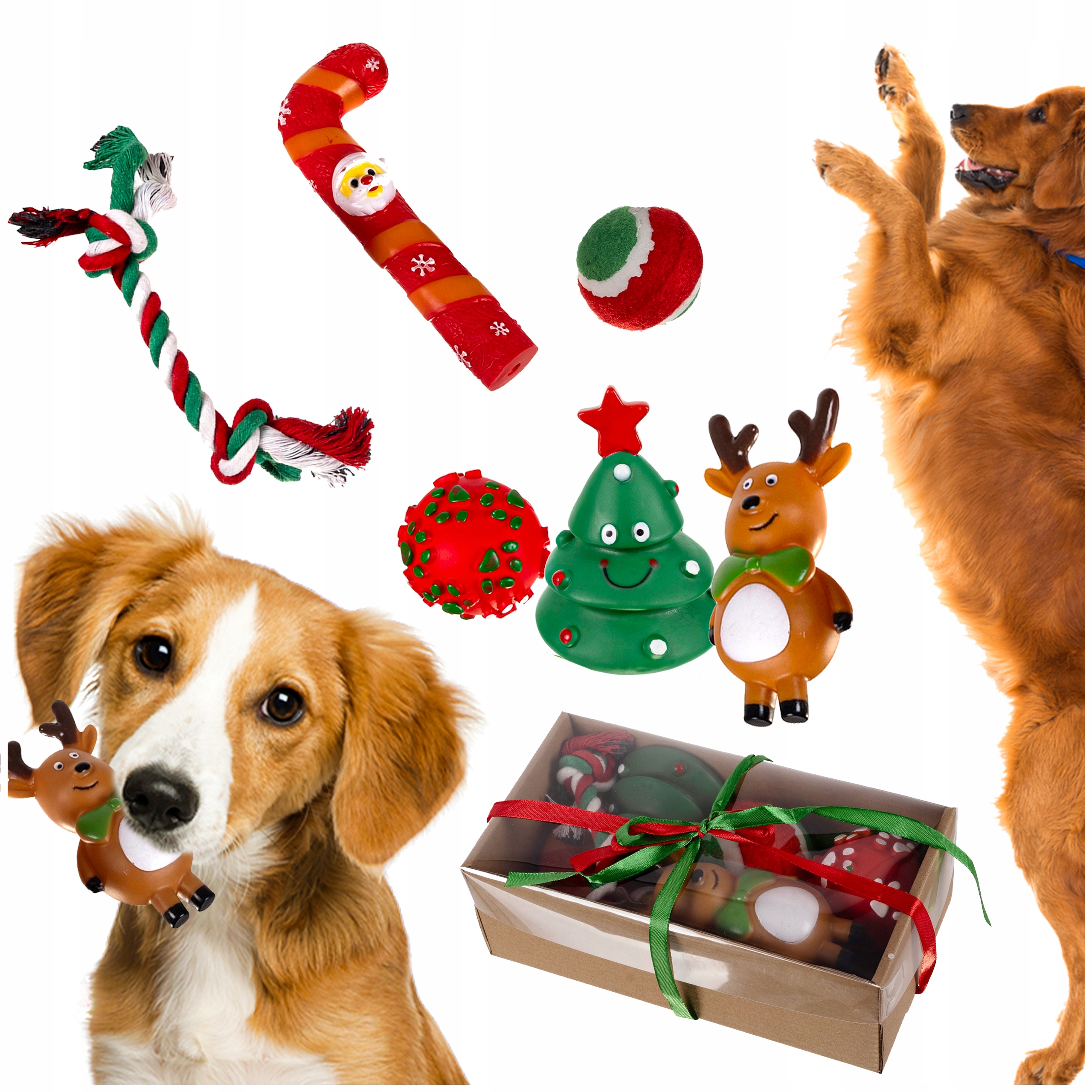 РОЖДЕСТВЕНСКИЙ ПОДАРОЧНЫЙ НАБОР ДЛЯ СОБАК - 6 ИГРУШЕК ДЛЯ ЕЛКИ