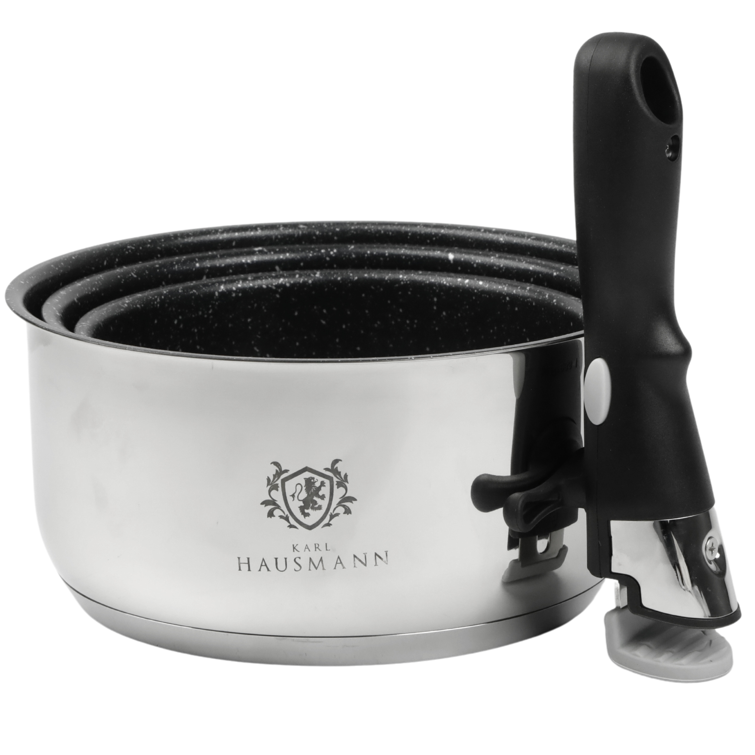 Набор слияния изготовлен из высокого качества из нержавеющей стали 18/0 , что обеспечивает устойчивость к устойчивости к коррозии . elegance , но также предотвращает прилипание блюд , что облегчает приготовление пищи и промывки . дополнительно до Набор горшков имеет съемную ручку , которая подходит для каждого горшка отдельно