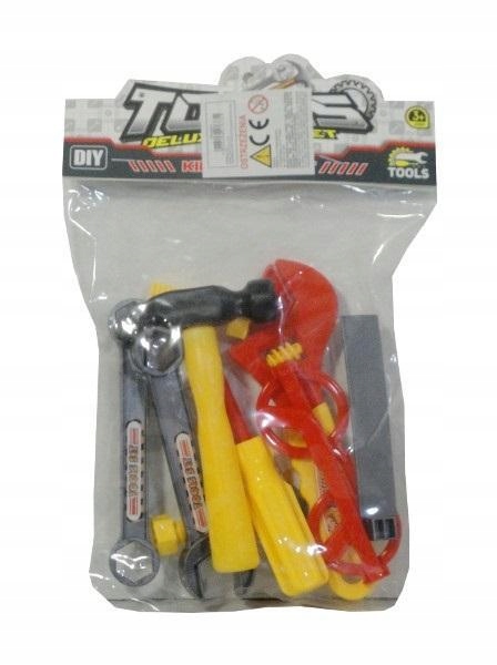 Набор основных инструментов для маленького DIY, как: молоток, отвертка, клавиши, очки и винты. Продукт упакован в прозрачную сумку. Продукт предназначен для детей с 3 лет. Приведенные размеры являются размерами упаковки. Полем
