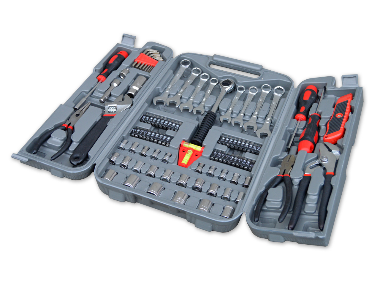 Практичный набор инструментов, состоящий из 95 элементов, помещенных в удобный чемодан. Компоненты набора изготовлены из высококачественной инструментальной стали и сгруппированы по назначению.