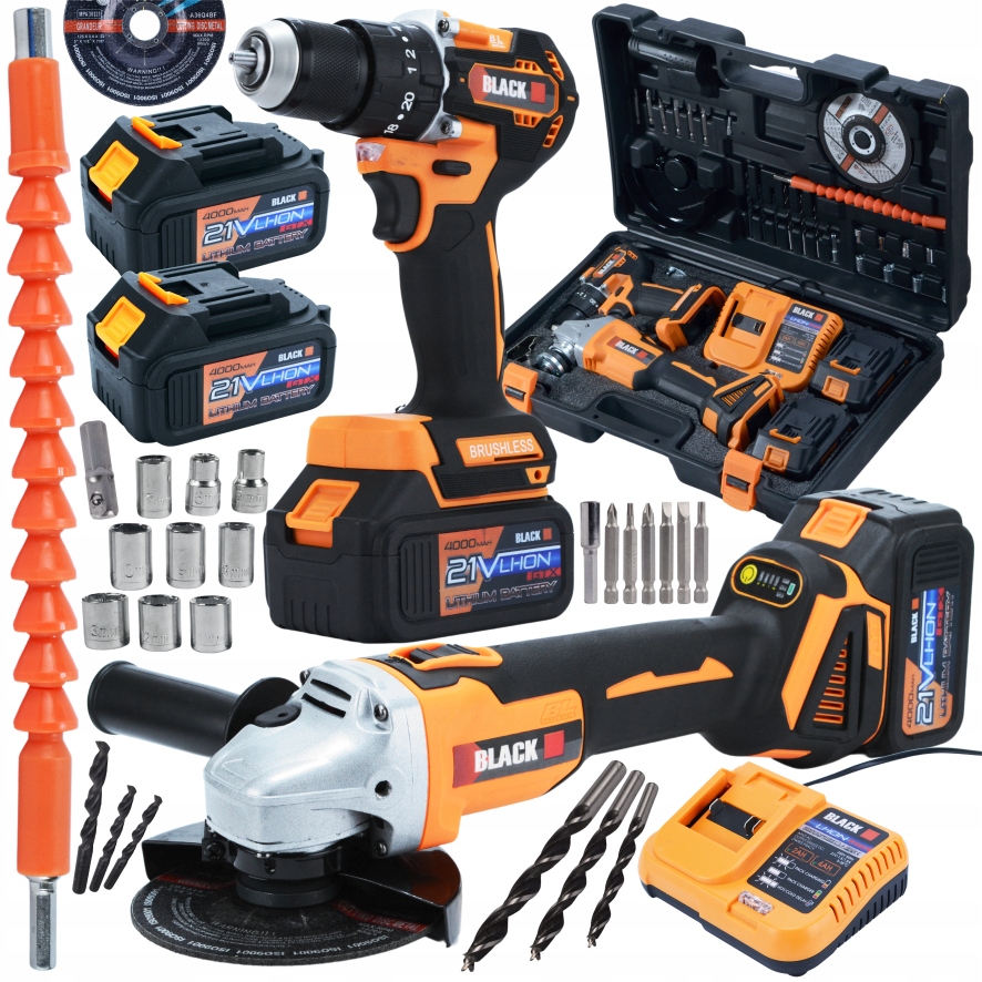 НАБІР ІНСТРУМЕНТІВ AKU 2X 4AH 21V 2в1 ШЛІФУВАЛЬНА МАШИНА ДРЕЛЬ ТА ВИКРУТКА УДАРНА ЧОРНАЯ