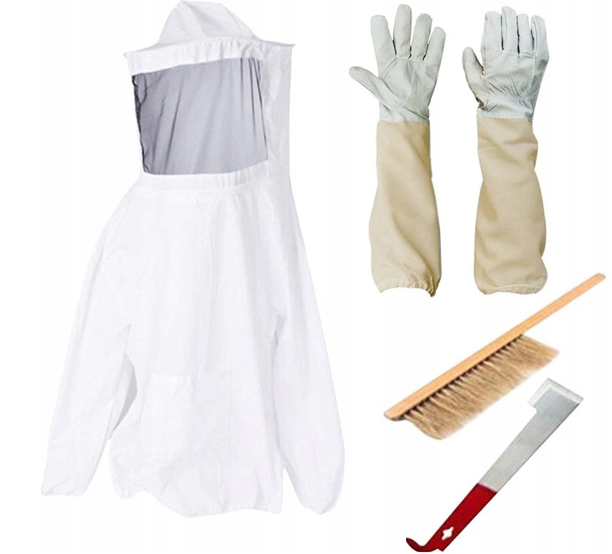 🐝 В комплект входит: Костюм пчеловода, перчатки для пчеловода, щетка для пчел и скребок, удобные и практичные.