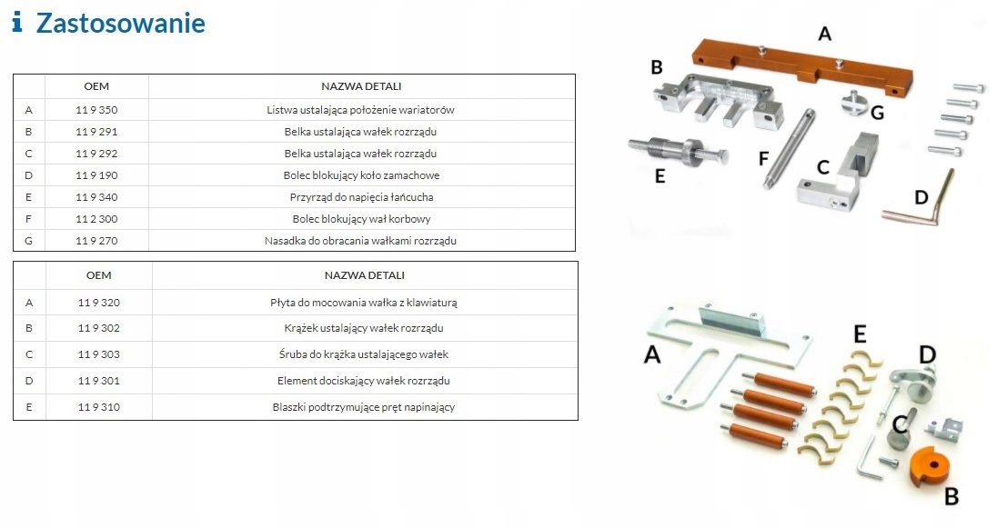 Набор позволяет осуществить замену и настройку ГРМ, а также замену распредвалов и натяжителя цепи в двигателях Valvetronic.
