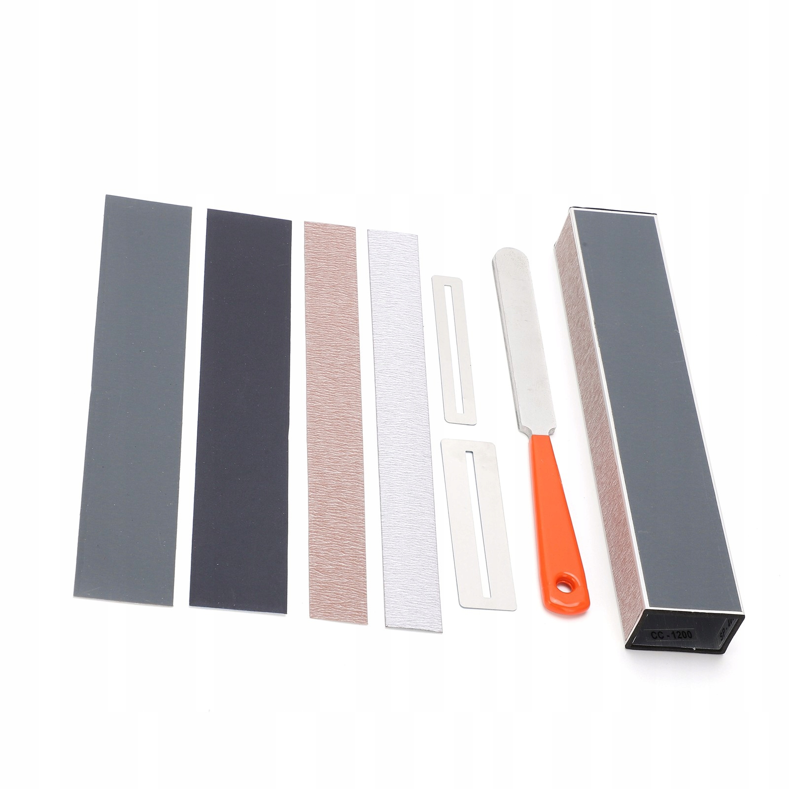 2. Сама выравнивающая полоска поставляется с четырьмя различными самоклеящимися наждачными бумагами, которые обеспечивают разную степень шлифовки.