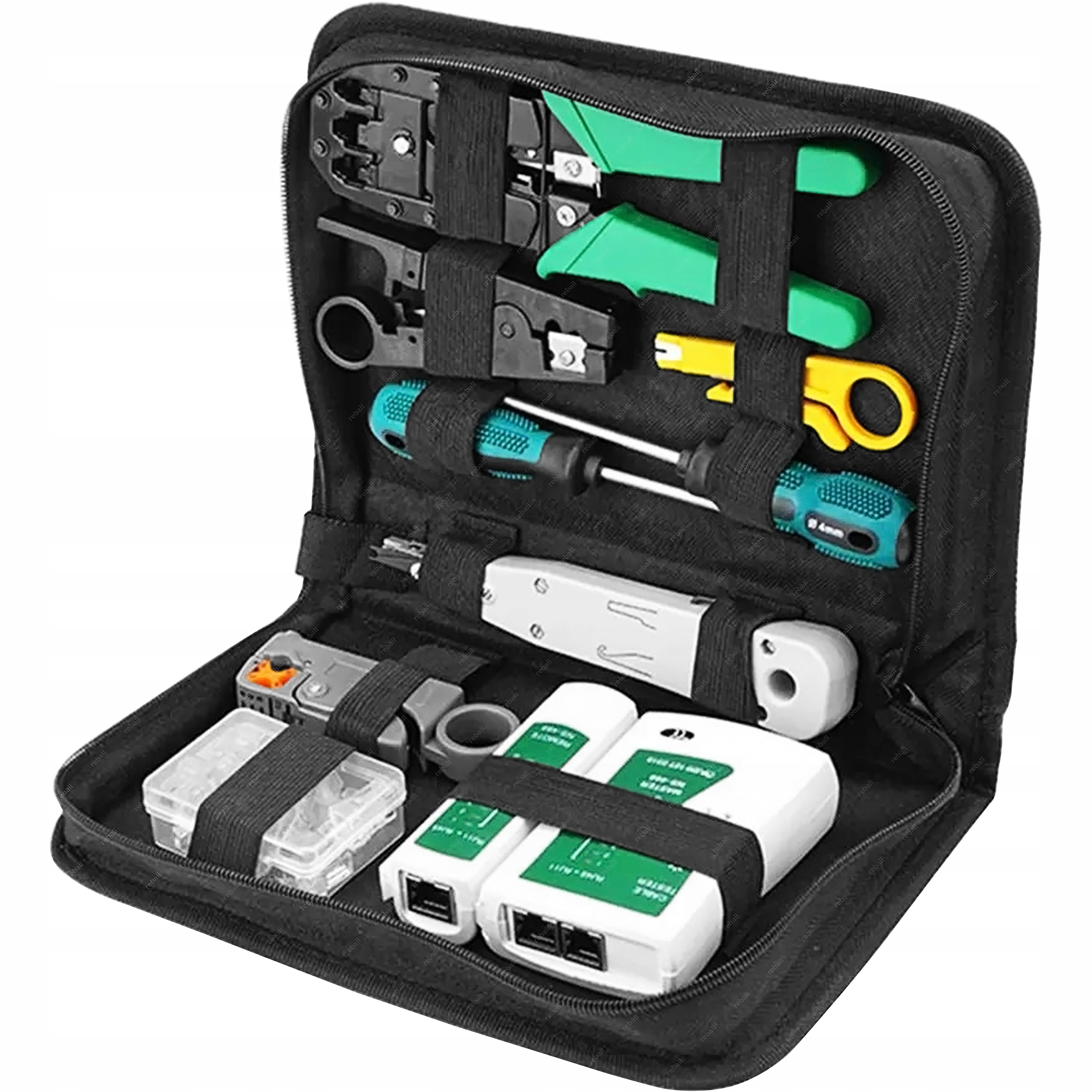 Необходимый комплект для создания новой компьютерной сети локальной сети, а также тестирования и устранения неисправностей существующей. Набор инструментов содержит все необходимое для работы с компьютерными и Интернет-сетями, как в дома, в школе, на предприятии или во время работы в поле.