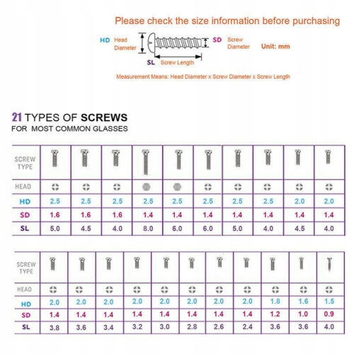 Винты 2.0x1.4x3.0 винты 2.0x1.4x2,8 Винты 2.0x1.4x2.6