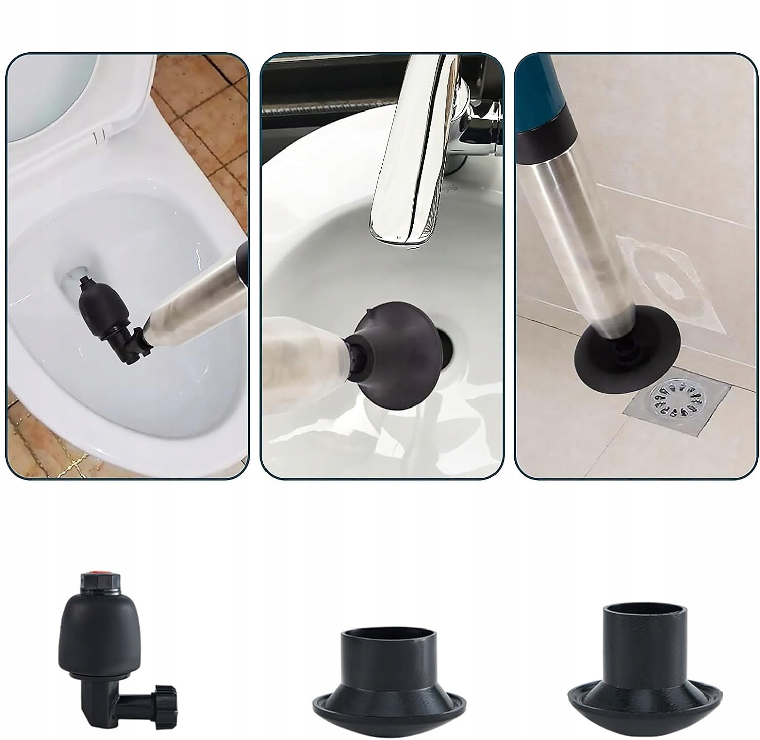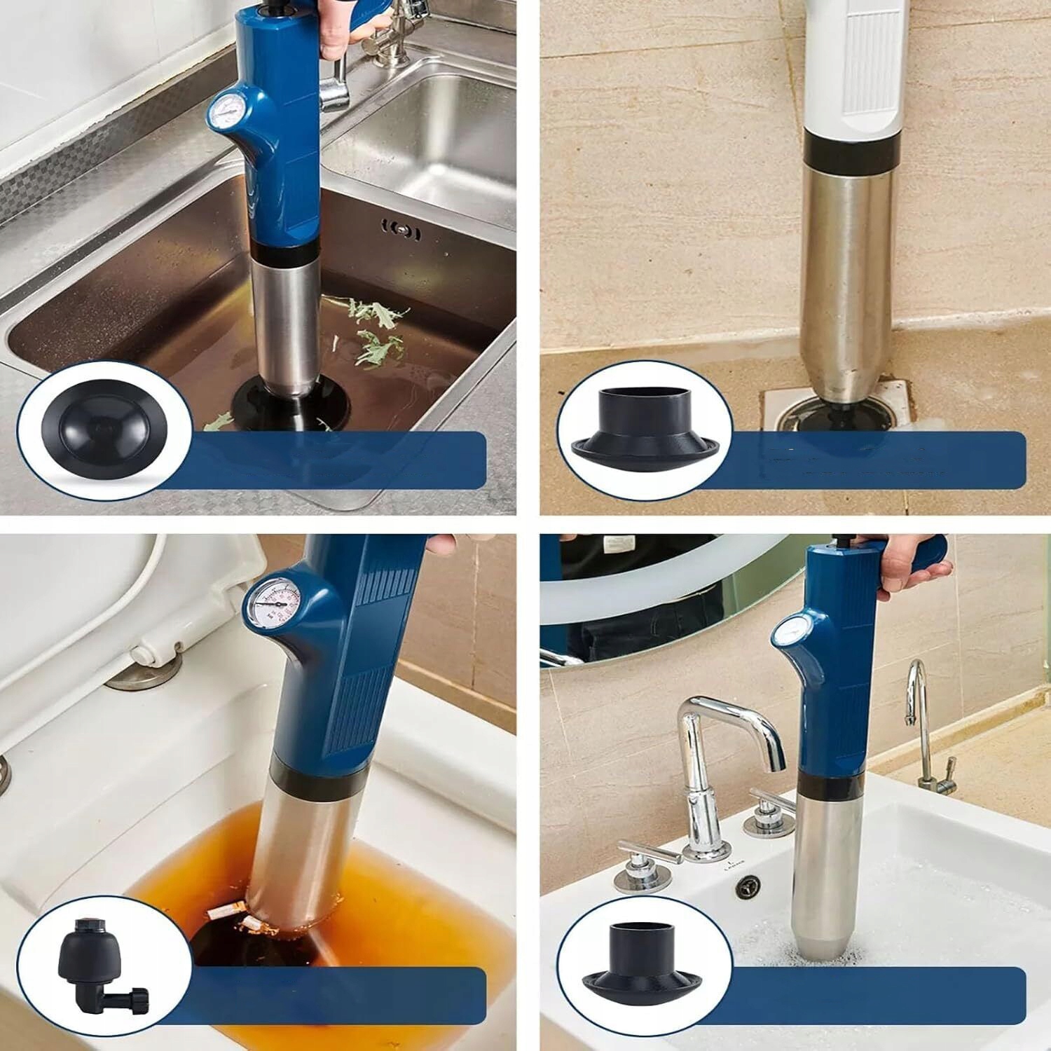 ➡ со многими заглушками, подходящими для туалетов, варбазинов, ванн, каналов сточных вод и других типов труб.