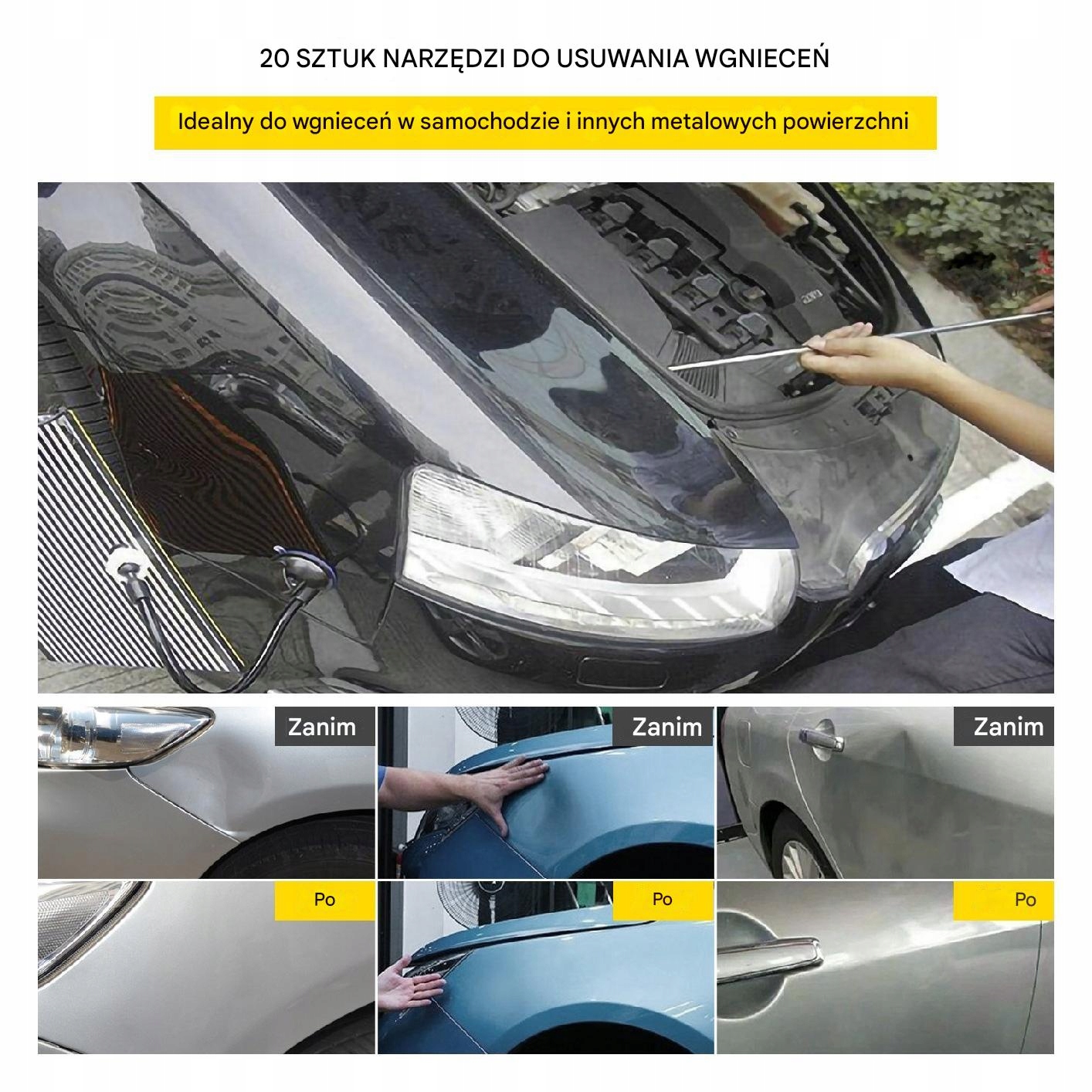 20-элементный набор для удаления зубов -это профессиональные инструменты, которые позволяют быстро и эффективно ремонтировать без необходимости дорогостоящей живописи . Благодаря солидной производительности, эргономичной форме и универсальным приложениям, это идеальное решение для всех, кто хочет восстановить автомобиль на идеальный вид . Закажите сегодня и удалите вмятины как профессионал!