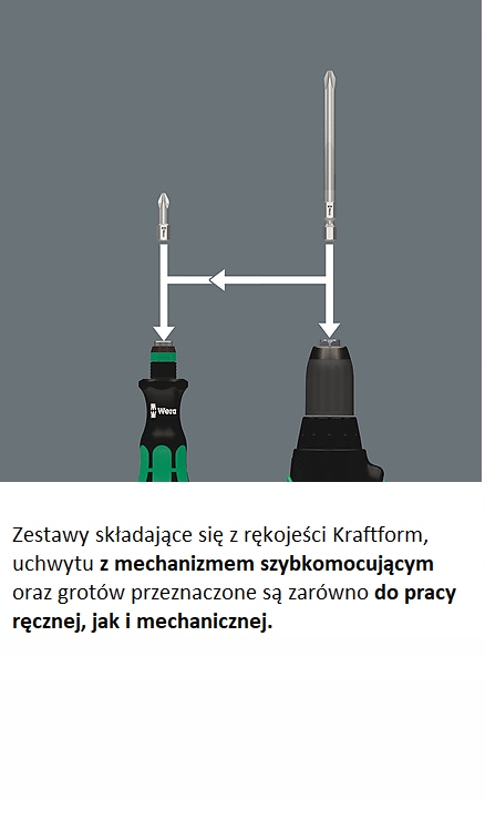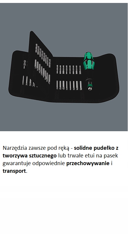 Сумочка с наконечниками длиной 89 мм для крепления на ремень. Многокомпонентная рукоятка Kraftform 816 R с быстрозажимным патроном Rapidaptor для работы без усталости. Для ручных и механических работ. Набор из 33 предметов.