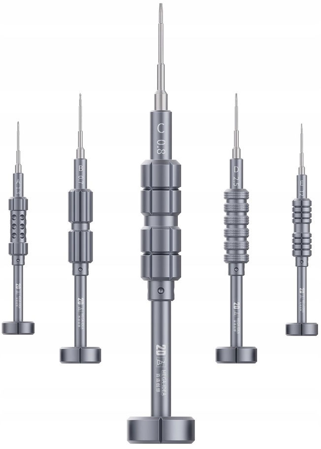 Держатель из алюминия, с магнитом на конце. Нескользящая ручка, удобная, с очень тихим подшипником. Набор магнитных отверток оснащен крупной маркировкой на ручке, каждая ручка разная, что облегчает нашу работу.