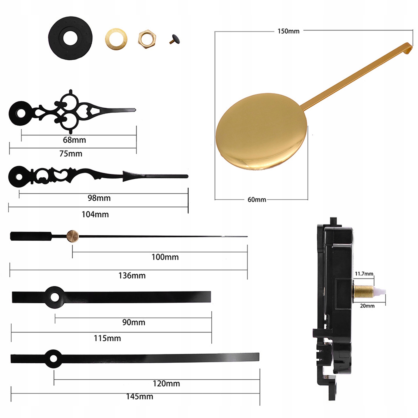 ✅ 1 маятниковый механизм 1 золотой маятник 2 часовые стрелки 2 минутные стрелки 1 секундная стрелка 1 секундная головка 1 черная резиновая шайба 1 шайба 1 гайка< /п>