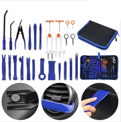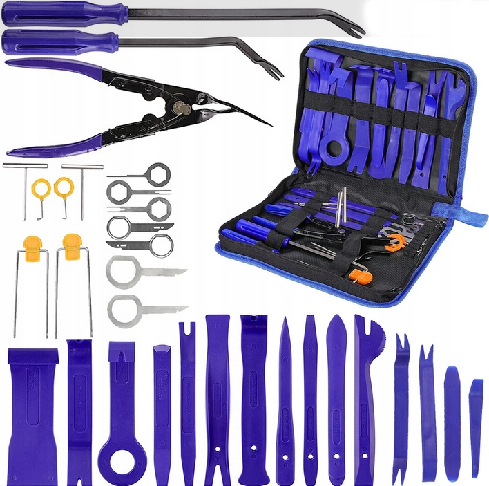 РАЗЛИЧНЫЕ ПРИМЕНЕНИЯ: В комплект входит 31 предмет различных типов инструментов для снятия дверных панелей, идеально подходящих для снятия и установки обивки автомобильной, морской, мебельной или авиационной техники, включая дверные панели, молдинги, оконные молдинги, зажимы, крепления, эмблемы, панели, радиоприемники и т. д.