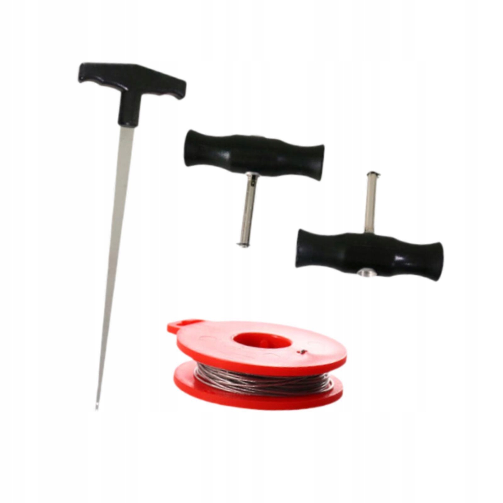1 набор инструментов для снятия лобового стекла (2 Т-образных рукоятки, 1 стальной трос, 1 инструмент для вставки троса с крючком)