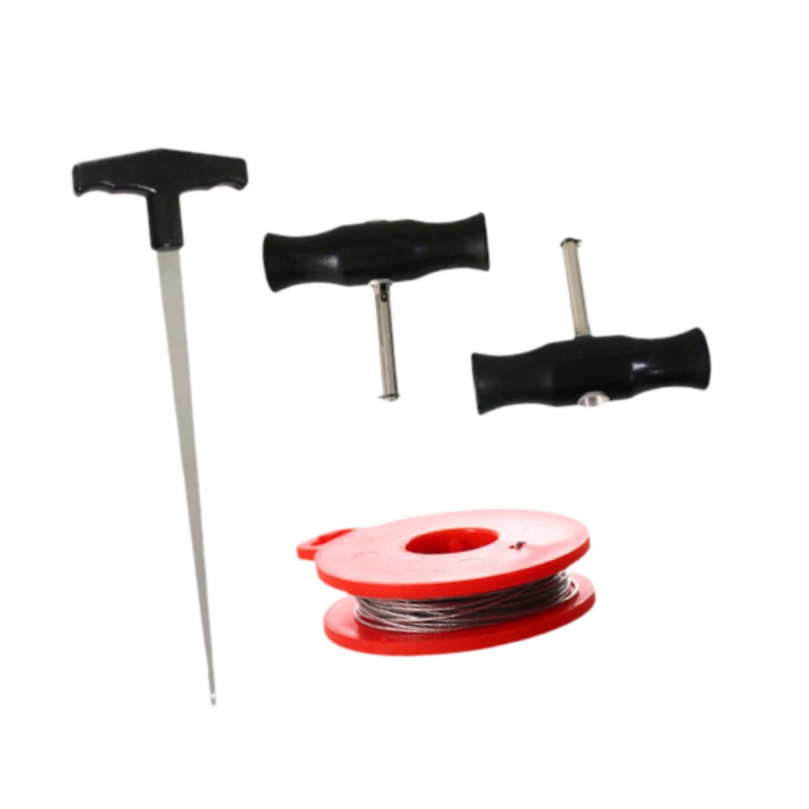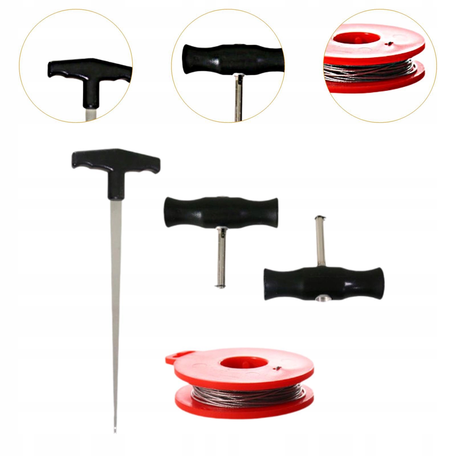 [Универсальный инструмент для снятия обшивки]: включает в себя 2 Т-образные рукоятки, 1 стальную проволоку, 1 инструмент для вставки проволоки с крючком, который легко скользит под краями дверной панели и крепежами для быстрого и эффективного поддевания без ущерба.