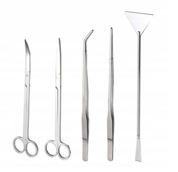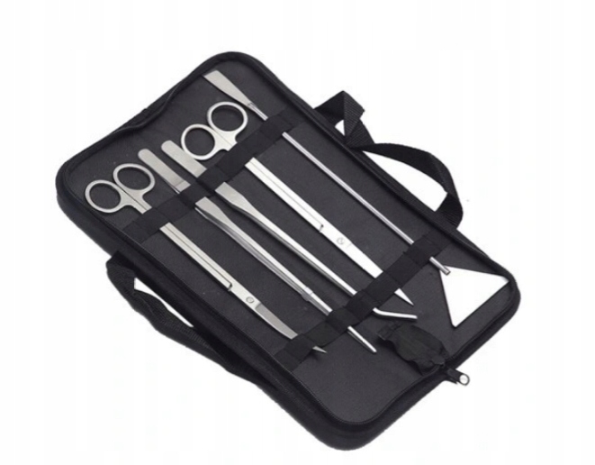 Функциональный комплект по уходу за аквариумом. Уборщик содержит целых 5 взаимозаменяемых элементов, которые значительно облегчают аквариум, чтобы привести в заказ (два пинцета, две пары ножниц и шпатель). Все элементы были сделаны из твердой нержавеющей стали. Целое было помещено в функциональную молнию на молнии. нержавеющая ставка. ножницы