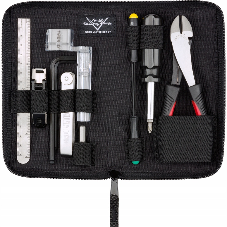 Любой музыкант нуждается в базовом наборе инструментов для настройки и регулировки электрогитаров и окуня. Набор инструментов Fender Custom Shop набор инструментов делает его простым благодаря удобной коллекции самых необходимых и наиболее используемых инструментов - специально разработанных для электрических инструментов. в том числе 5 в 1 Окрутнее специального шестиугольного адаптера 4 мм для регулировки стержня фермы, отвертка 1/2 "для входных розетков, Несоответствующие шестиугольные ключи для регулирования седла, правителя, косой резаки, капо, трещин и струйных намотков