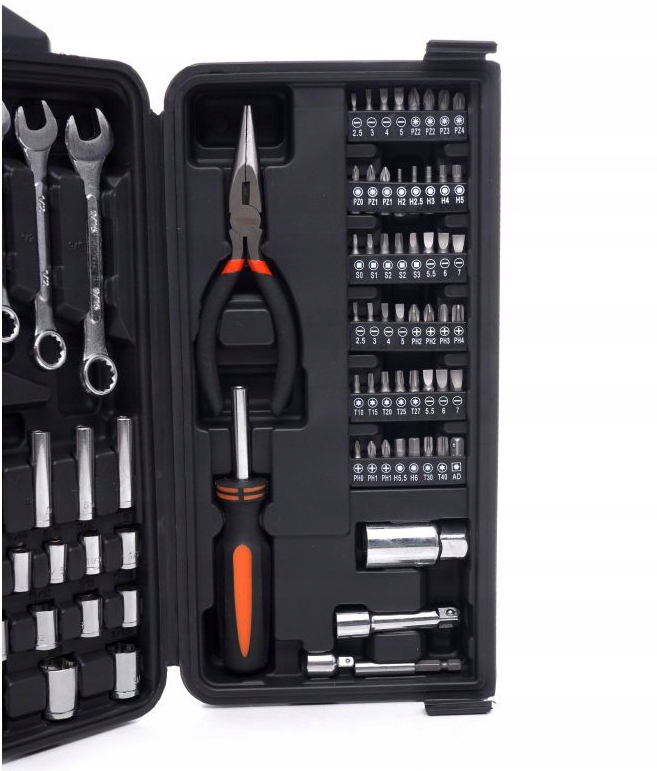 - ⭐ Чемодан из прочного пластика позволяет держать вещи в порядке и легко переносить инструменты. У каждого инструмента есть свое место, где можно легко найти ключ нужного размера.