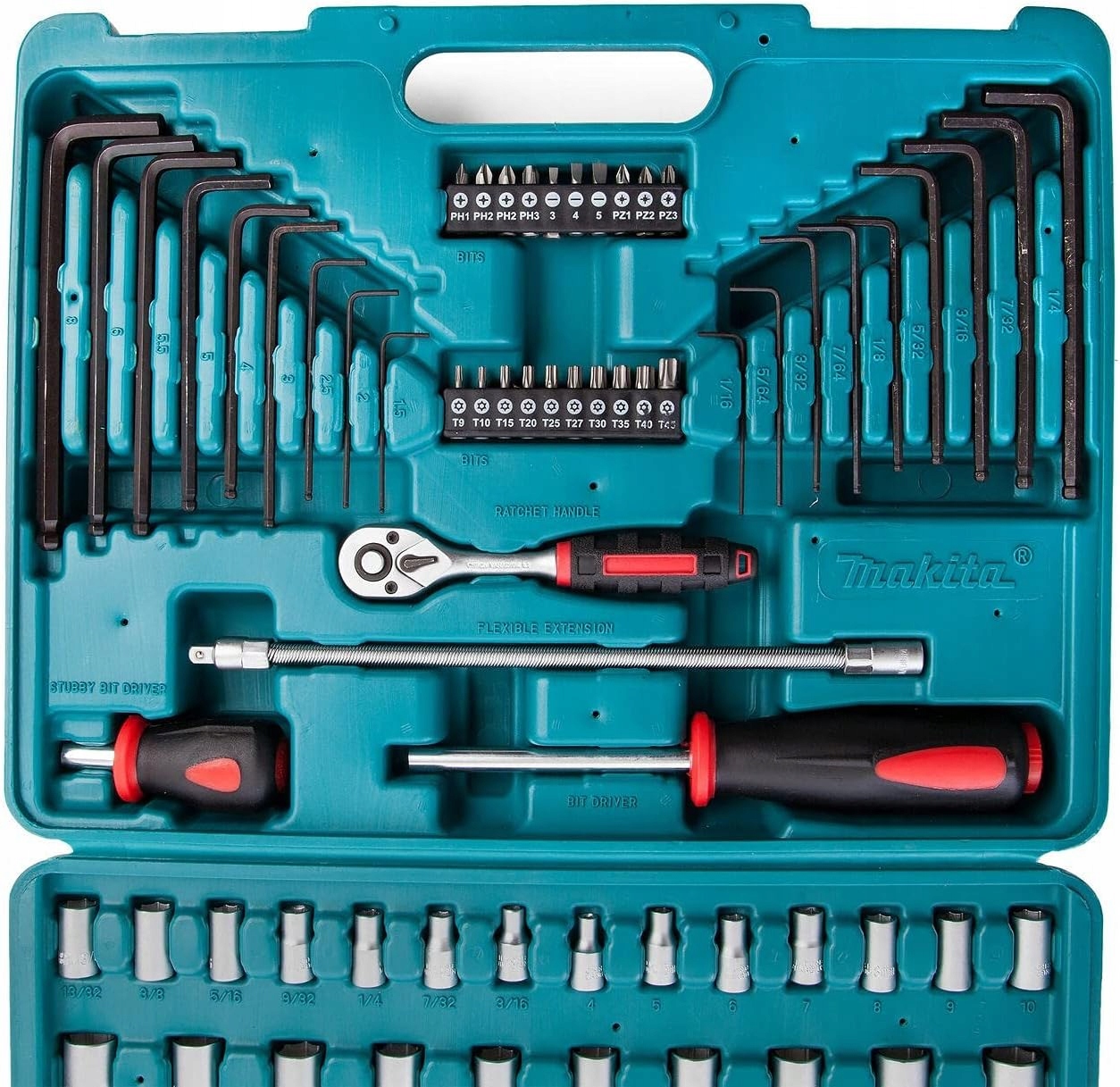 Набір інструментів MAKITA 91 шт. Набір торцевих ключів в КЕЙФІ. Тріскачка