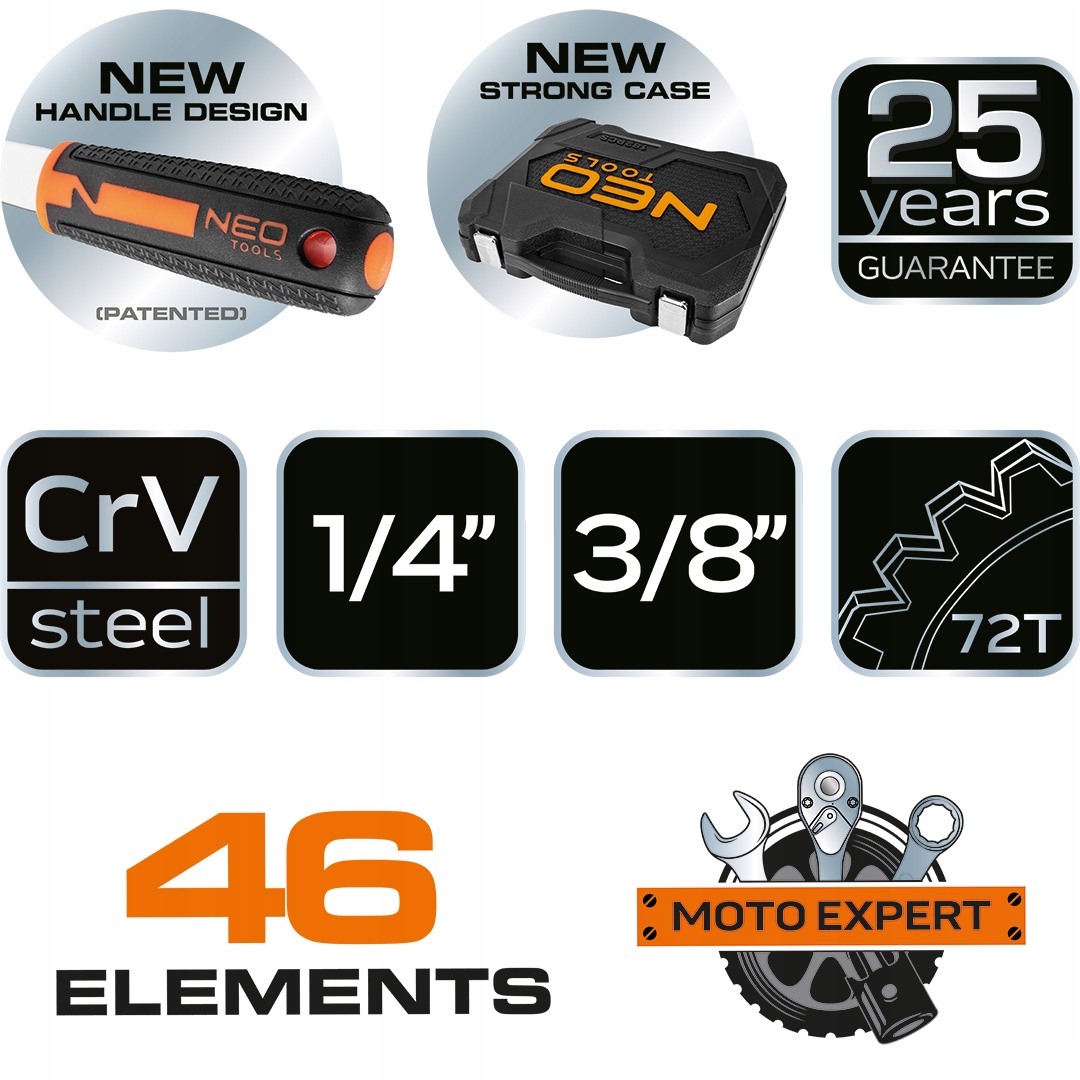 Neo Tools 1/4 " + 3/8" через набор крестообразных шапок, 46 шт. (Cat. № 10-019)