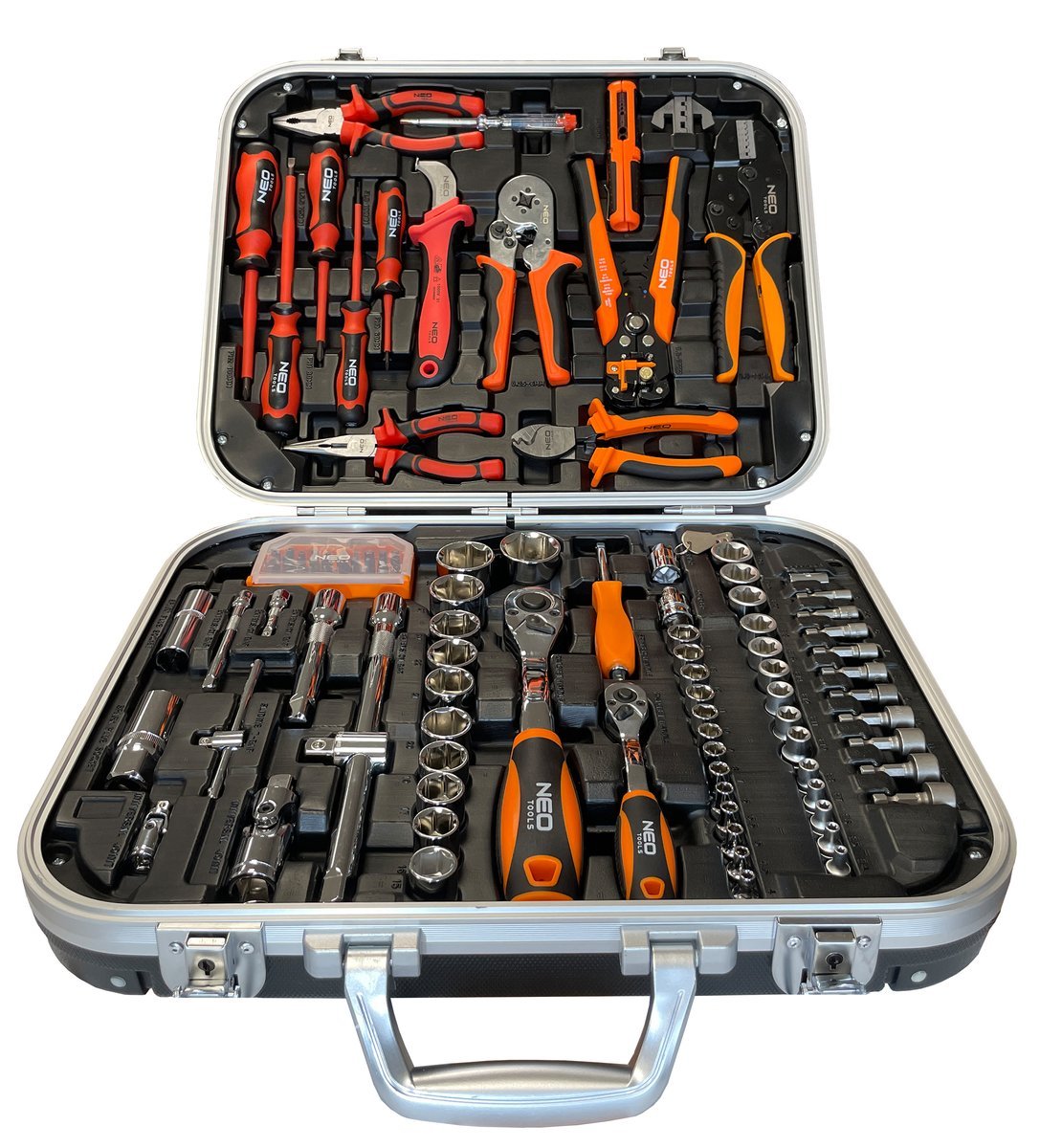 Чемодан электрика 108 шт. NEO (арт. № 01-310) представляет собой комплектный чемодан с набором самых полезных электроинструментов и набором торцевых ключей. Набор подойдет для большинства электромонтажных работ. Бренд NEO оправдывает ожидания профессионалов.