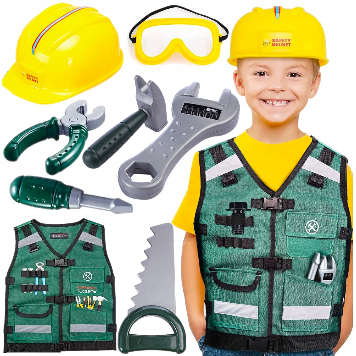 НАБІР ІНСТРУМЕНТІВ ПИЛА МОЛОТОК ШОЛОМ ОЧИРИ ЖИЛЕТ