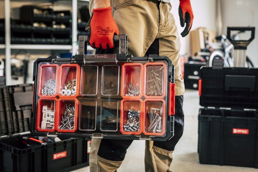 Модульный, прочный ящик для переноски ручных инструментов, строительных материалов, а также для хранения различных предметов, например, в гараже или дома.
