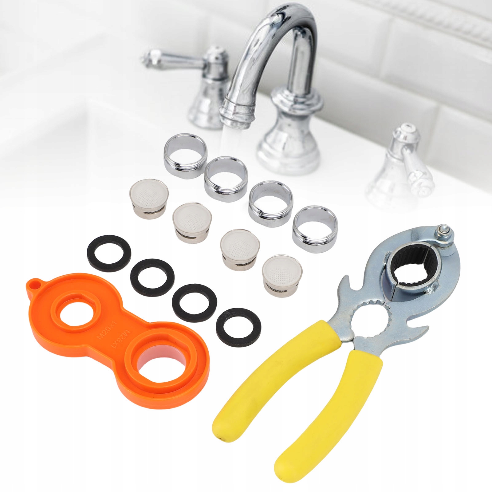 3. Применимый диапазон: набор аэраторов подходит для аэраторов с внешним диаметром от 21,5 мм до 27 мм (от 7/8 дюймов до 1 дюйма) и высотой 7 мм (0,27 дюйма) или больше, предлагая широкий диапазон возможностей, который используется. Минимизировать брызги и повышение эффективности потребления воды. Это помогает сэкономить воду при поддержании высокого давления, подходящего для кухонных и азиенко -кранов