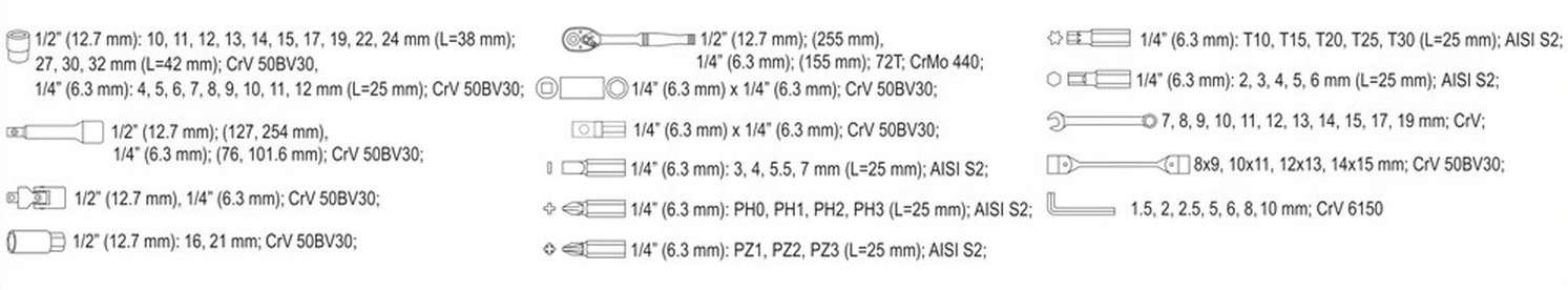 Набор можно использовать для сборочных работ, механического ремонта и многих других работ в хозяйстве или мастерской.