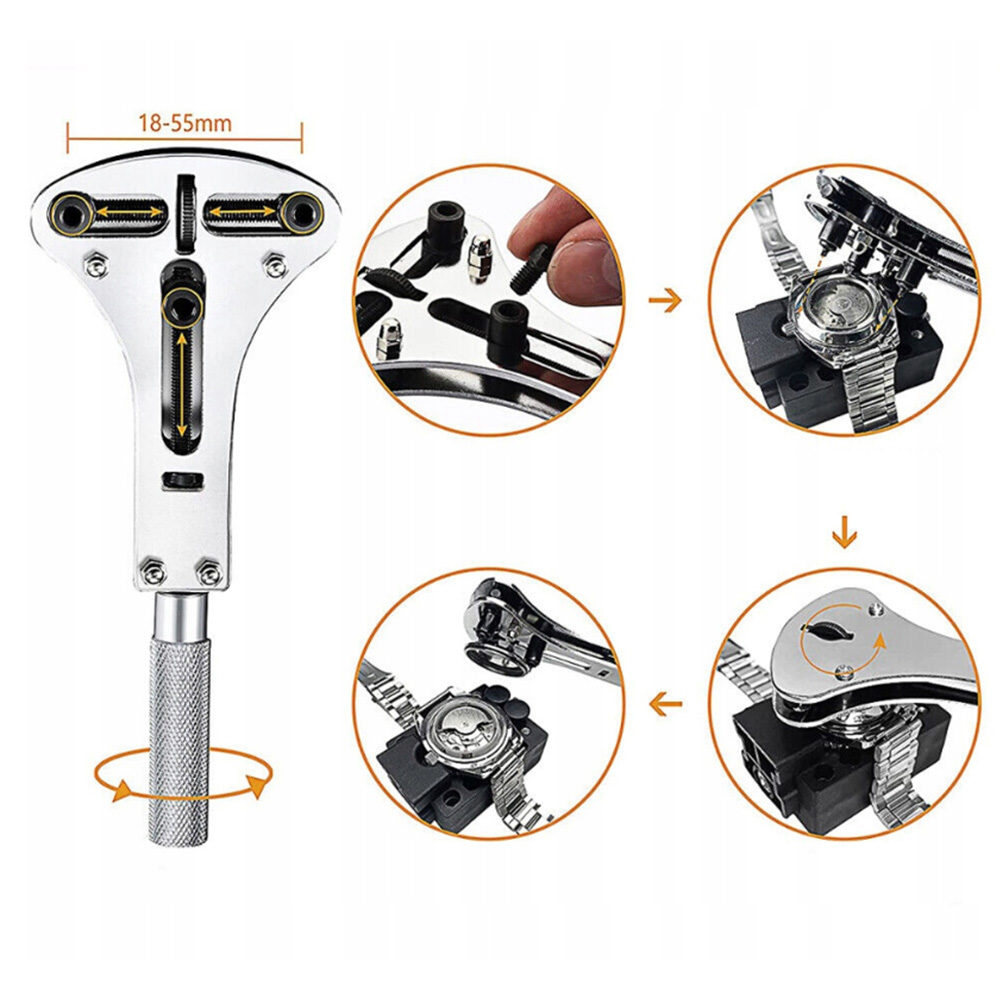 ✅【Широкое применение】Профессиональный комплект для ремонта часов – это очень подходит для ремонта и регулировки часов, таких как разборка ремешка, открытие задней крышки часов, замена батареи часов, замена ремешка, регулировка ремешка, очистка внутренней части часов, уход за внутренней частью часов и т. д. .
