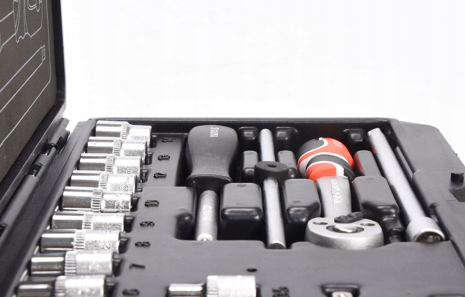 Торцевые ключи и торцевой привод изготовлены из прочной хромованадиевой инструментальной стали CrV 50BV30. Головки, оснащенные системой AS-Drive, увеличивающей максимальный крутящий момент на 25%, с полной защитой кромок гайки, головки с двухцветной отделкой поверхности.