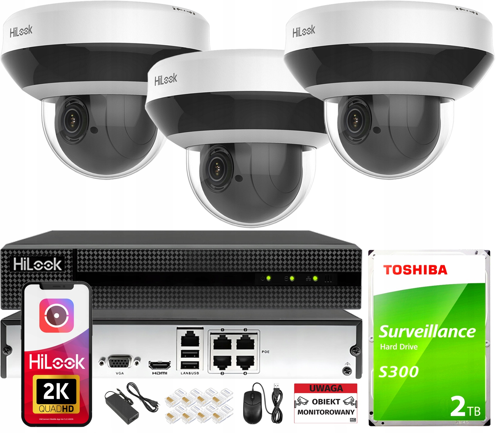 Комплект IP 4Mpx PTZ-мониторинга, 3 PTZ-камеры HiLook с возможностью расширения до 4: