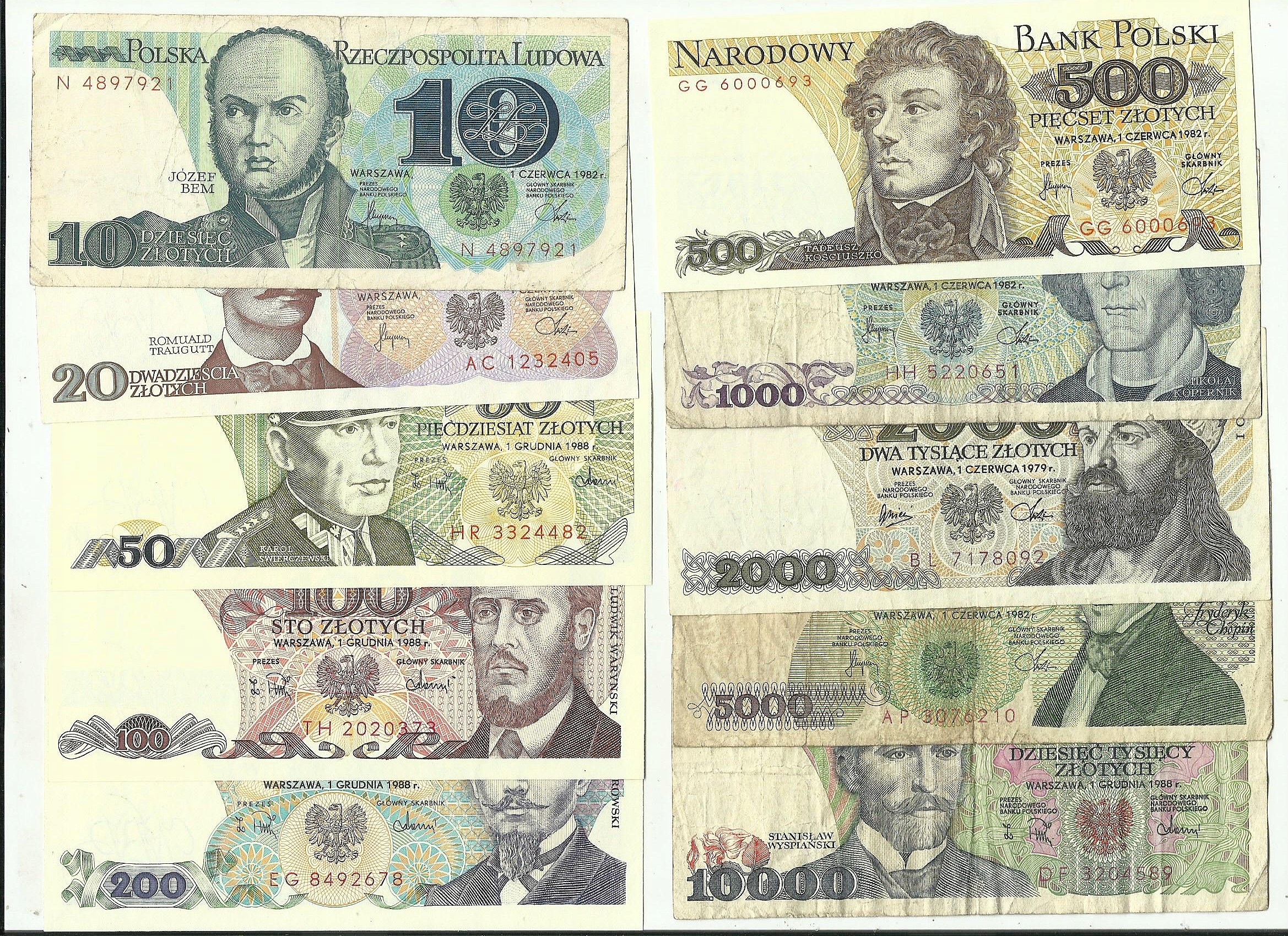 Набір із 10 банкнот PRL номіналом від 10 до 10 000 злотих різного стану