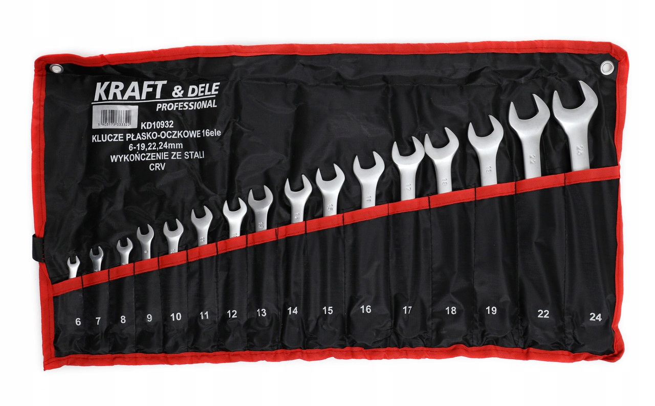 Плоские ключи 16 шт. 6-24 мм CRV в случае польского бренда Kraft & Dele