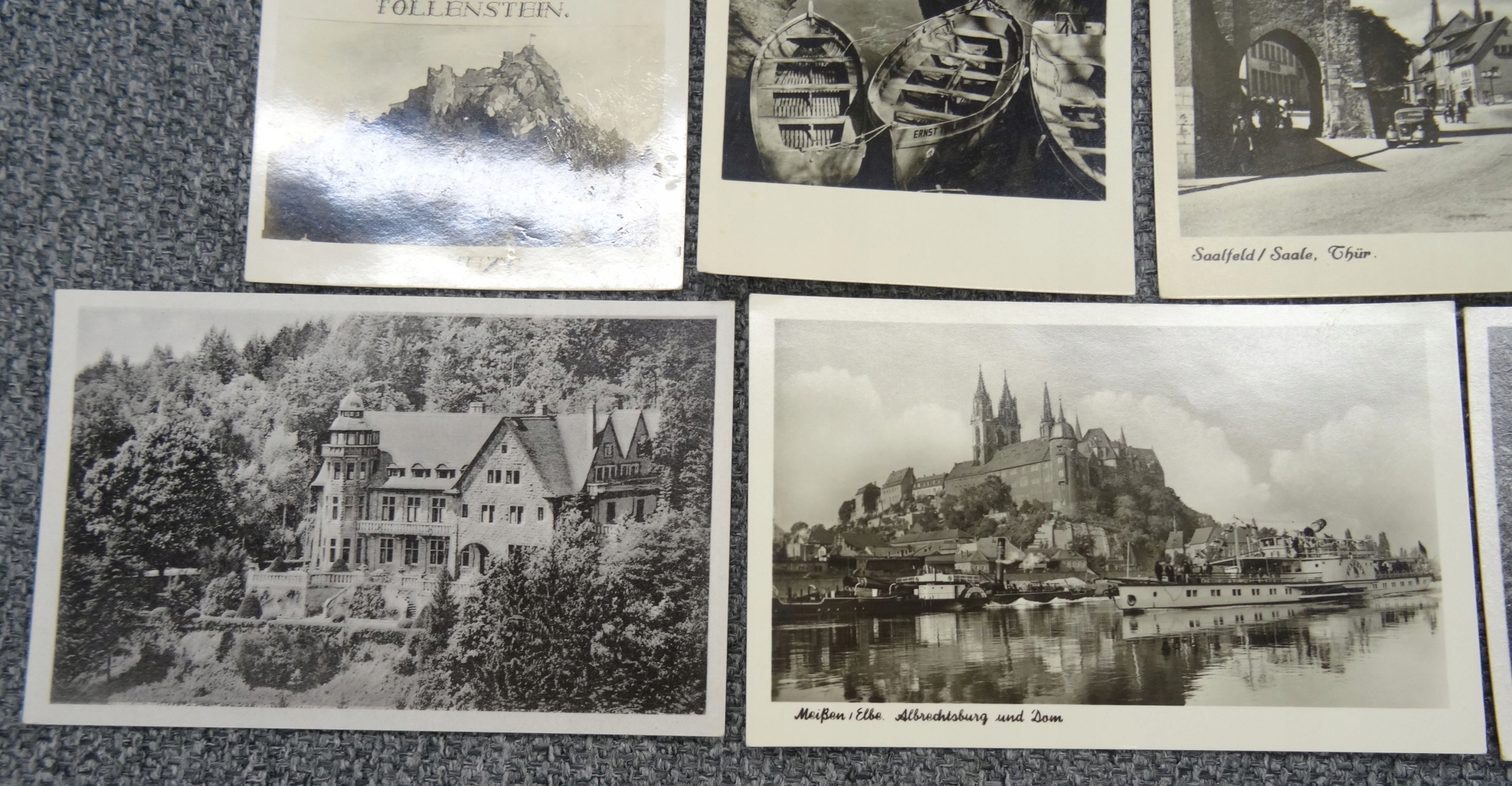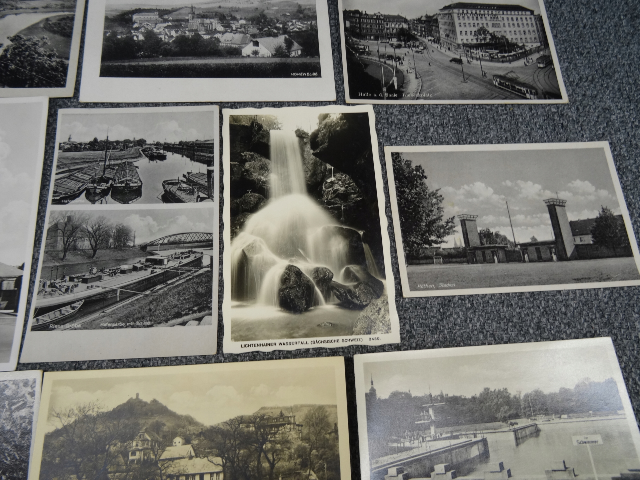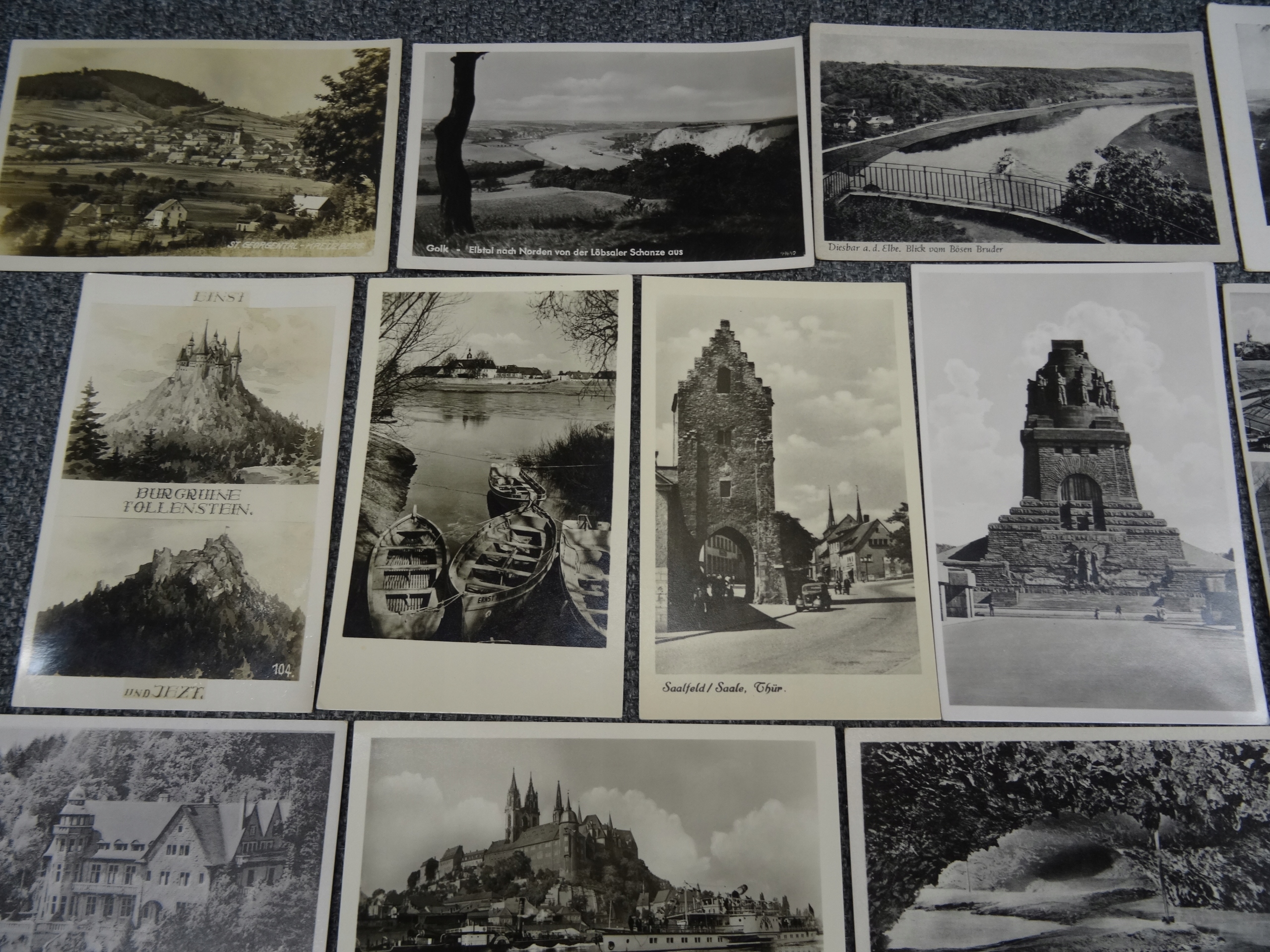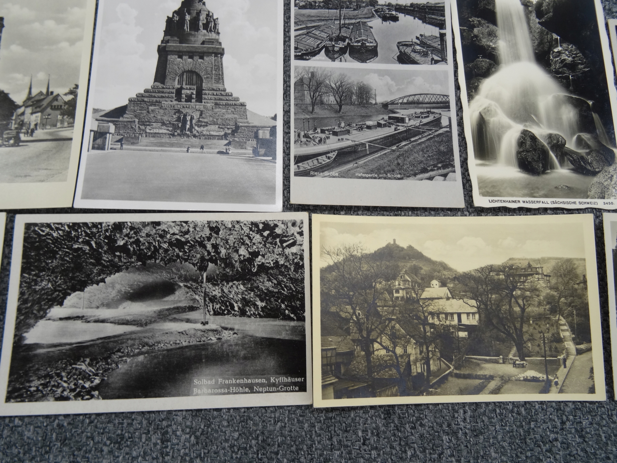 Набор из 17 открыток Германия черно-белых 1940-х годов. Темы; панорамы сел, городов, памятников, водопада, грота, памятника, замка