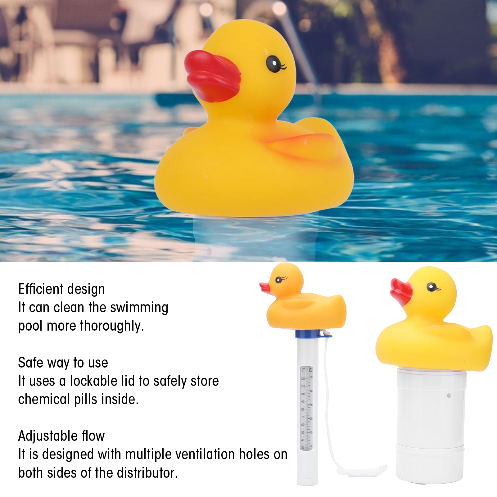 2. Безопасно в использовании, имеет запирающуюся крышку для безопасного хранения химических таблеток внутри, обеспечивая более безопасную работу в бассейне.